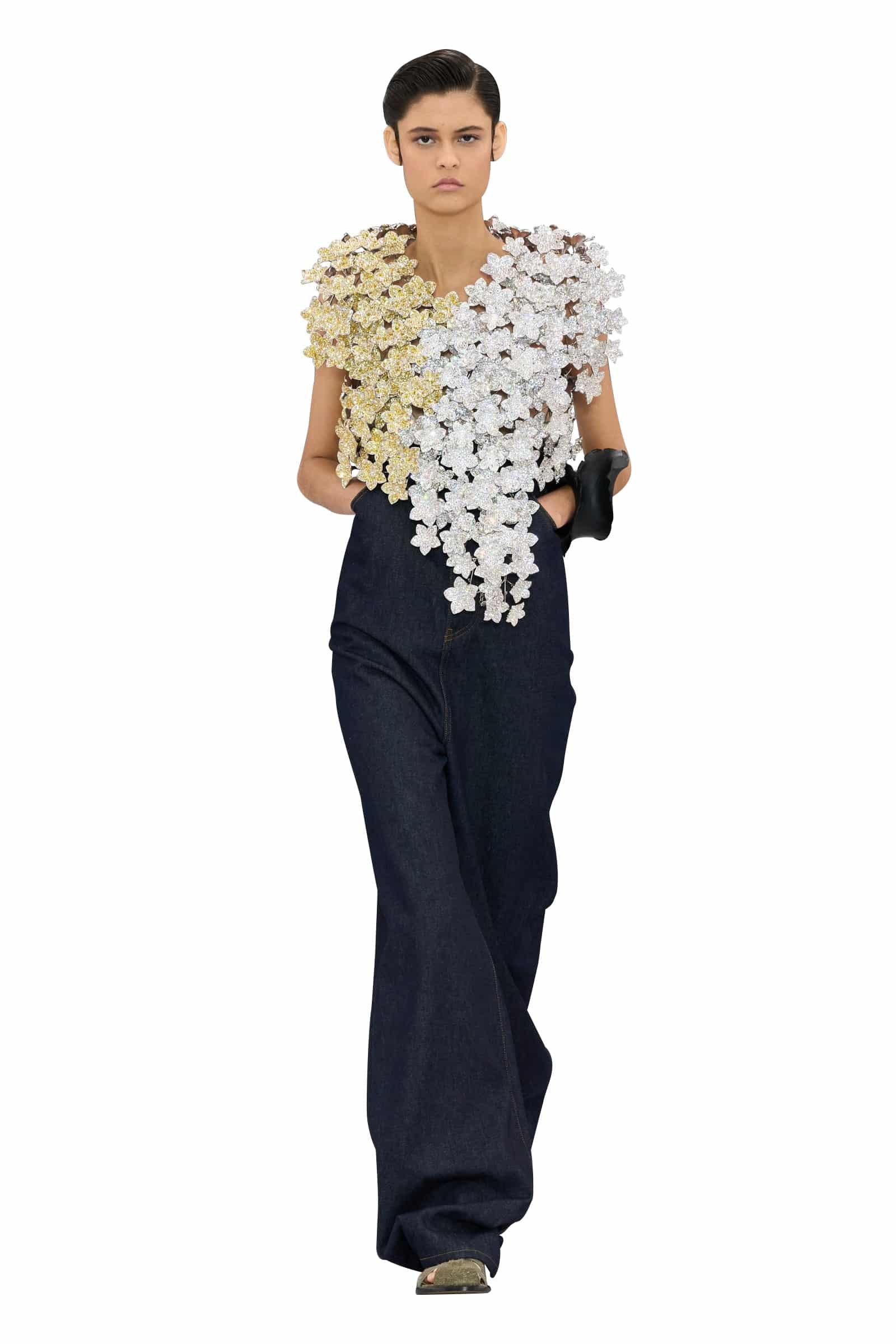 Trên các sàn diễn của Loewe và Balmain, thời trang không chỉ là trang phục mà còn là những tác phẩm nghệ thuật sống động. Kỹ thuật thủ công đang được các nhà mốt khai thác tối đa, kết hợp với những ý tưởng sáng tạo táo bạo, biến những bộ cánh trở thành tác phẩm đính kết lấp lánh, vừa mang vẻ đẹp cổ điển, vừa toát lên vẻ hiện đại, phù hợp với gu thẩm mỹ giới trẻ. Từ những viên đá quý được kết hợp thành họa tiết hoa văn độc đáo, thậm chí là danh tác, nhằm mang đến trải nghiệm thị giác đầy cảm hứng.