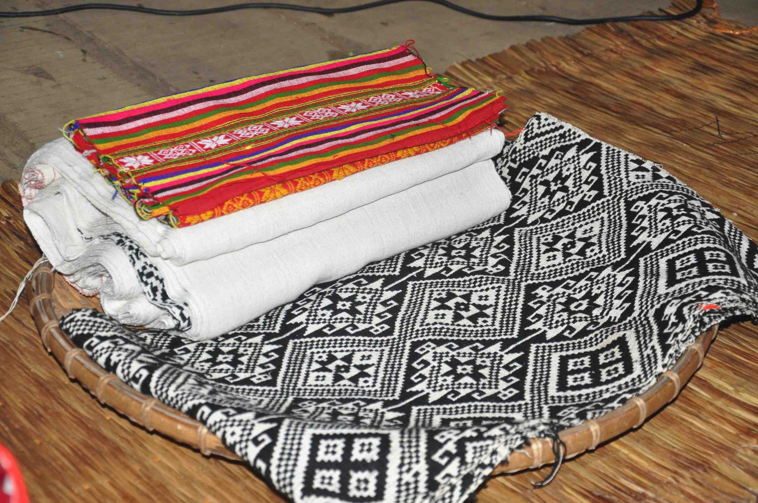 Bên cạnh còn có 1 bát gạo, hai quả trứng gà, 1 bát nước đựng 3 hòn sỏi, 1 búi cỏ mần trầu, hai bông hoa cắm trên bát gạo… Ba búi cỏ mần trầu thả vào bát nước đựng 3 viên sỏi tượng trưng cho gia đình luôn có 3 thế hệ cùng nhau chung sống khỏe mạnh, làm ăn phát đạt, đôi vợ chồng trẻ vững vàng niềm tin xây dựng tổ ấm hạnh phúc, luôn cứng cáp trước khó khăn, thử thách của cuộc sống. Cỏ mần trầu còn tượng trưng cho sự sinh sôi, nảy nở, bám rễ lâu bền… Bát nước đựng cỏ mầm trầu dùng để chải tóc là để tóc chắc khỏe, mượt, dài nhanh, không bị rụng. Để chúc phúc cho đôi vợ chồng, bà con dòng họ còn đặt vào mâm lễ một số đồ lưu niệm, món trang sức và có khi là một ít tiền.