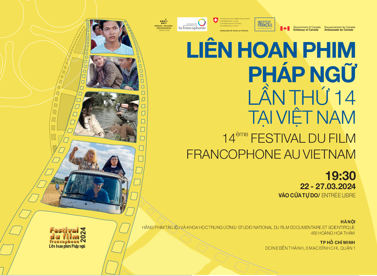 Liên hoan Phim Pháp ngữ lần thứ 14 tại Việt Nam sẽ diễn ra từ ngày 22 đến ngày 27 tháng 03 tại Hà Nội tại Hãng Phim Tài liệu và Khoa học Trung ương, 465 Hoàng Hoa Thám và tại TP. Hồ Chí Minh, DCINE Bến Thành, 6 Mạc Đĩnh Chi, Bến Nghé, Quận 1.