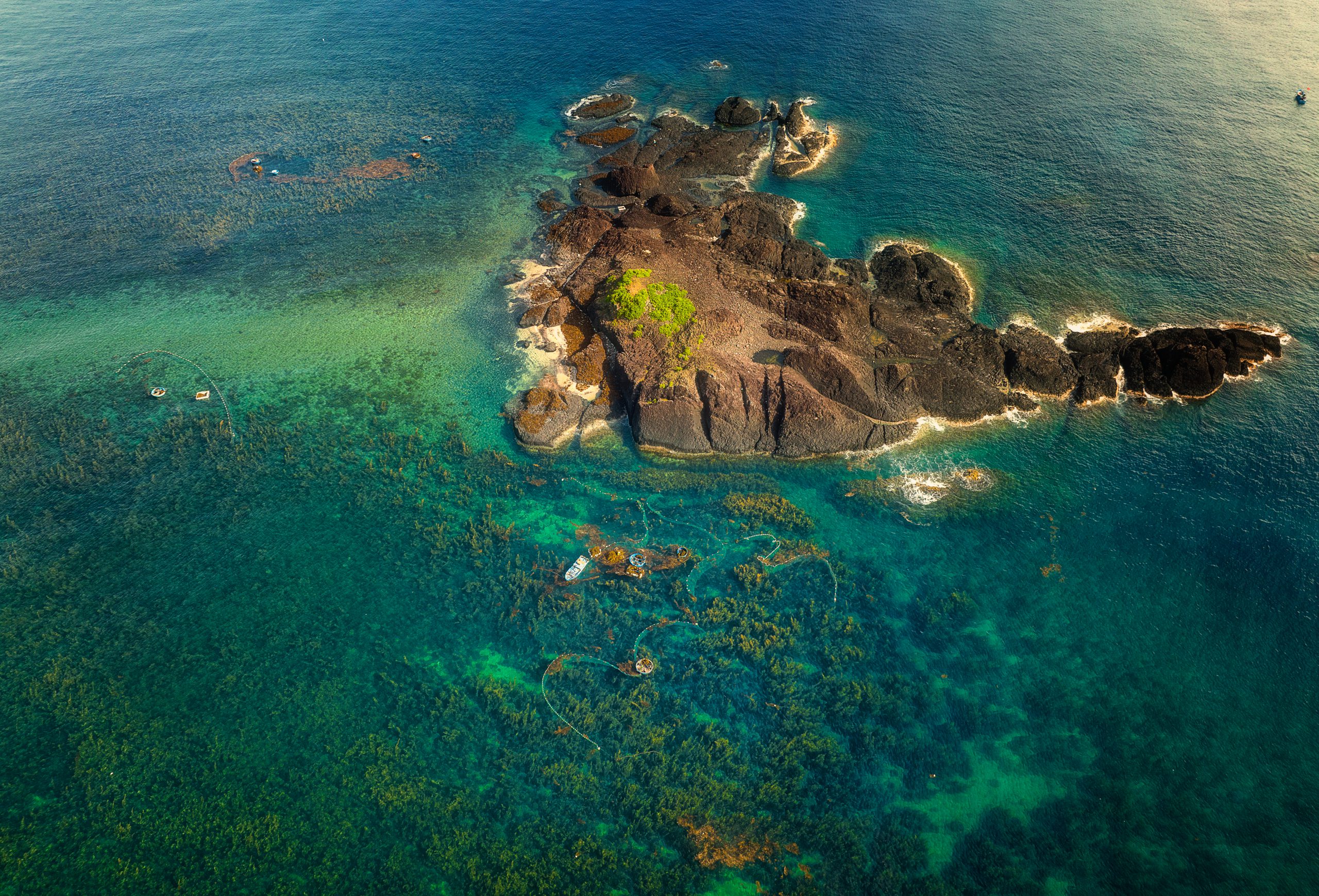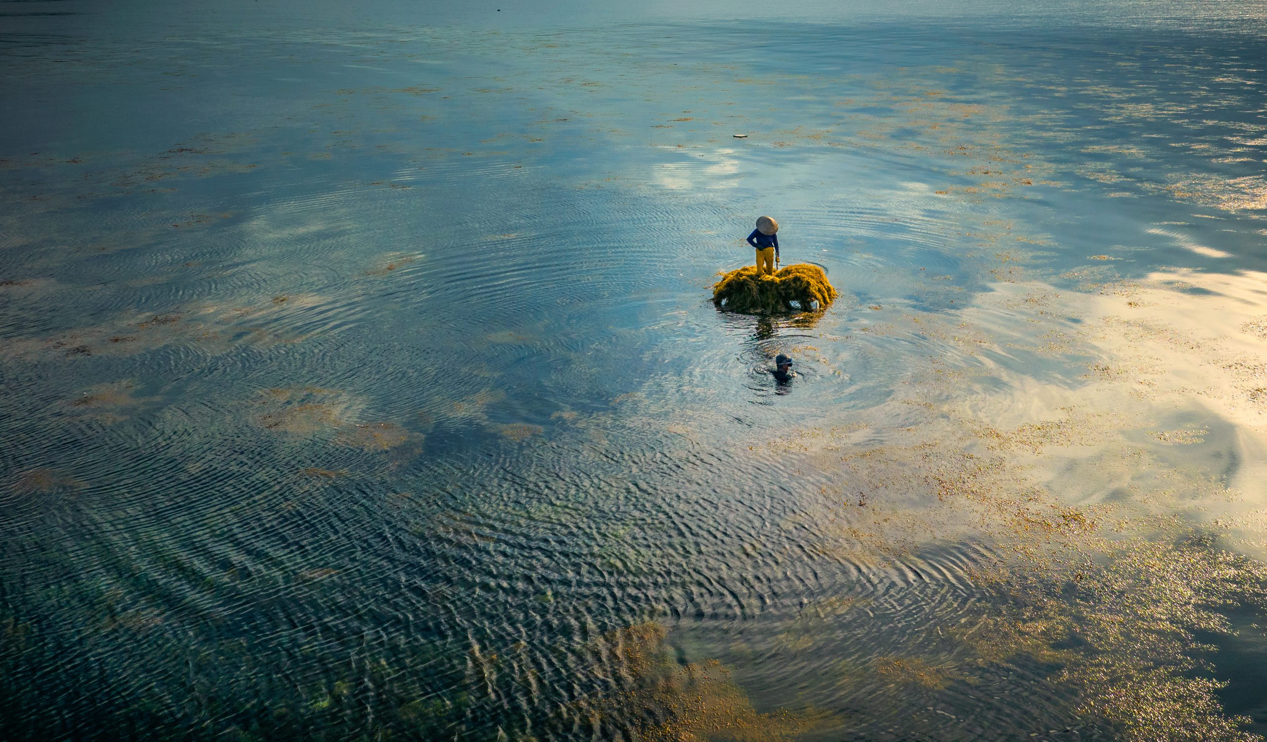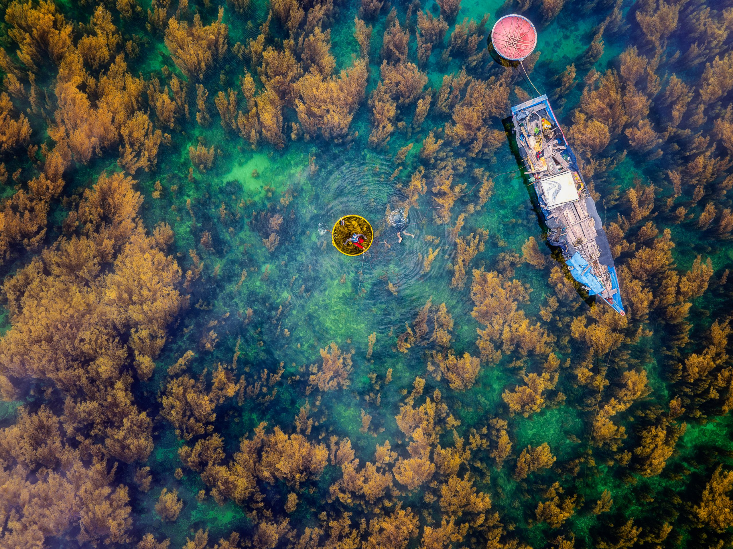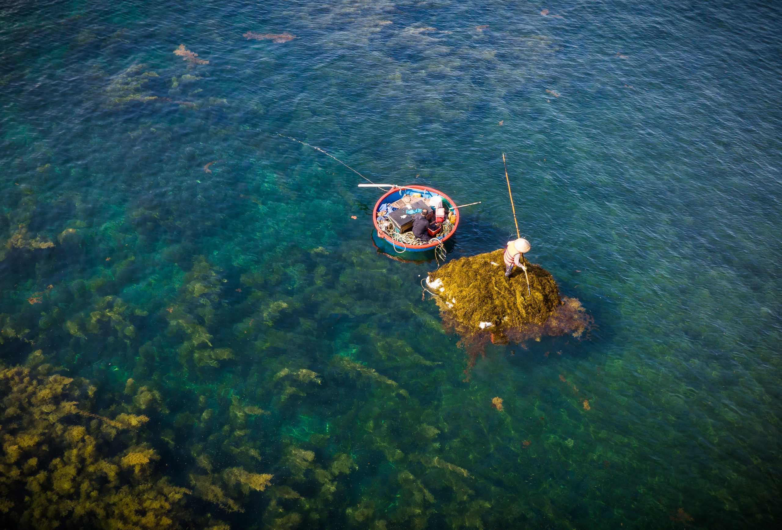 Thu hoạch rong mơ gần Hòn Nhàn