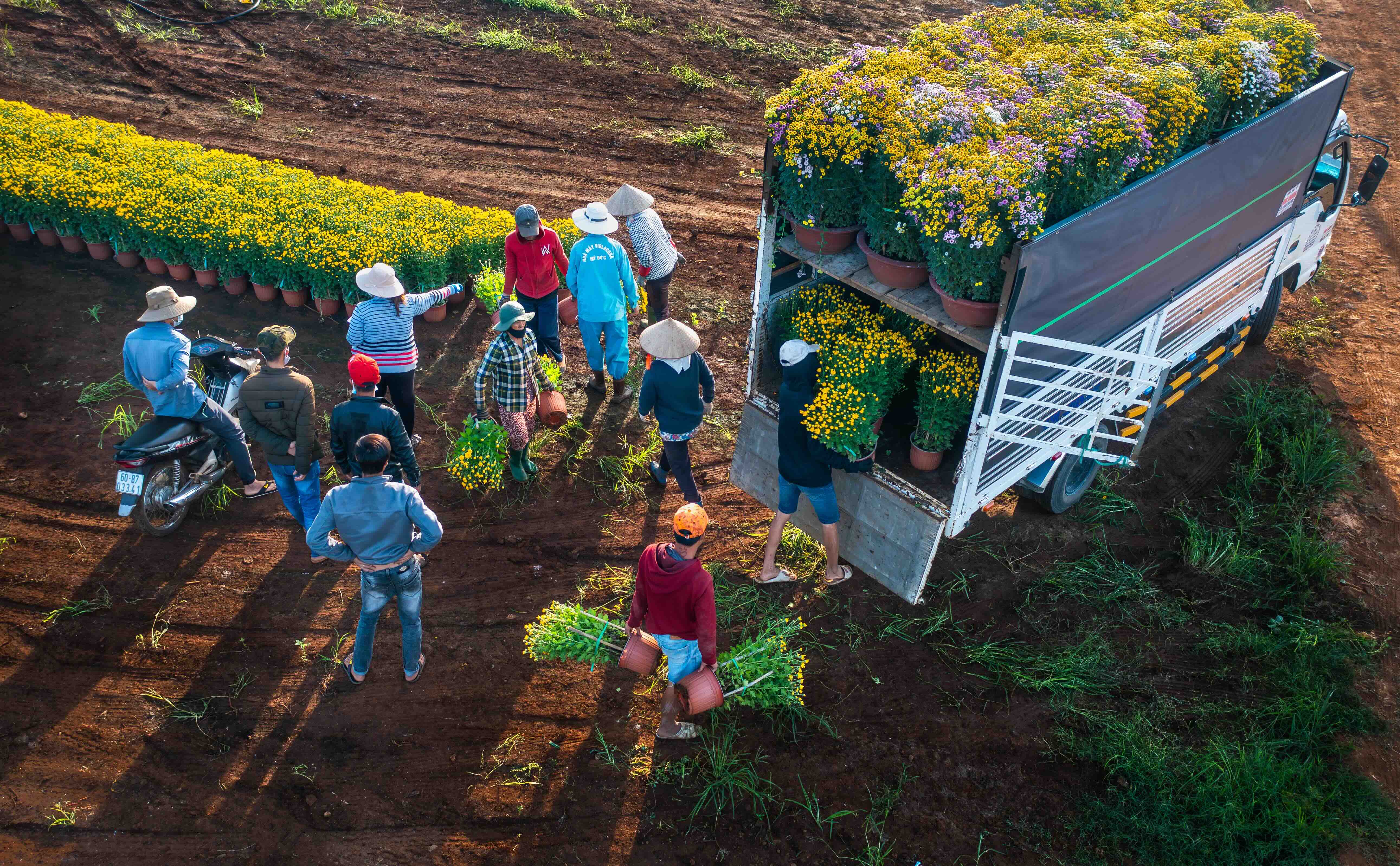 Từ sau rằm tháng Chạp, không khí càng thêm nhộn nhịp. Xe tải lớn nhỏ nối đuôi chở hoa đi khắp miền Nam. Chợ hoa rộn ràng tiếng cười nói. Khách thập phương không chỉ mua hoa, mà còn lưu giữ khoảnh khắc xuân qua những bức ảnh tươi tắn bên cánh đồng rực rỡ.