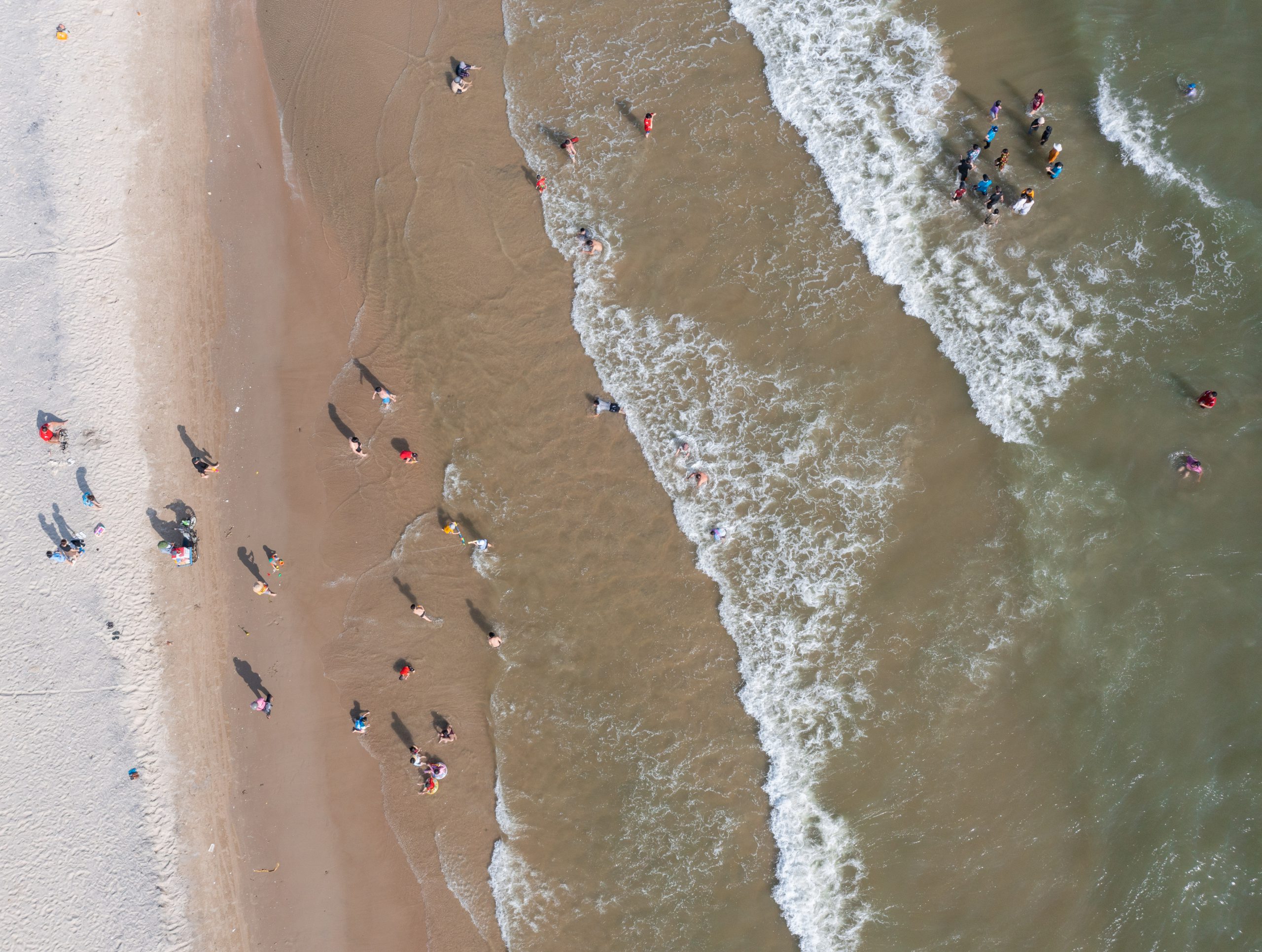 Trên bãi biển, sát chân sóng có nhiều ngư dân đang bận bịu với công việc vá lưới, giũ lưới thu hoạch cá vừa đánh bắt, cạnh bên là thuyền thúng để hàng dài theo lối trên bãi cát. Còn qua góc nhìn trên cao, những tàu thuyền xa xa mang theo cá, tôm về bến, trên bờ có rất đông những người thân đang mong ngóng chồng, con họ quay trở về. Những nụ cười rạng rỡ với thành quả “lộc biển” sau chuyến lênh đênh ngoài khơi khiến du khách chỉ nhìn thôi cũng thấy vui lây.