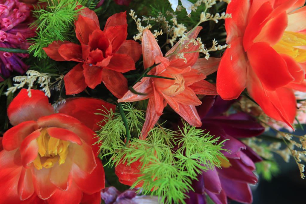 Qua bàn tay phù thủy của ông, cỏ cây hoa lá được trao tặng một đời sống mới, tô điểm cho không gian của con người. Có những bình hoa được thiết kế theo phong cách châu Âu cổ điển, thích hợp cho các lễ tình nhân, tiệc cưới hoặc sinh nhật. Và cũng có những bình mang dấu ấn của nghệ thuật cắm hoa Nhật Bản, đơn giản và tinh tế. Để tạo nên những tác phẩm này, nghệ nhân đã dùng tất cả các loại thực vật hiện hữu tại Việt Nam. Trong đó, hoa thì có phong lan, thiên điểu, cúc, hồng, sử quân tử, cẩm tú cầu… Ngay cả những bông hoa lau, hoa tre… vốn rất dễ bị hư hại cũng được dùng làm nguyên liệu. Khách tham quan thường rất tò mò với bông hoa hình dáng kỳ lạ, như cây rau bắp cải, sau khi sấy khô, tạo dáng bỗng hiện lên với vẻ đẹp lạ lùng. Cứng và thô như quả cây xà cừ cũng được dùng, sau khi ngâm tẩm, tẩy trắng, bóc tách từng cánh nhọn sẽ trở thành một đóa hoa rất đẹp. Nguyên tắc xử lý hoa nói ra thì đơn giản, nhưng khi áp dụng với từng loại cây hoa khác nhau sẽ đòi hỏi cách thức khác nhau. Điều này đòi hỏi tính kiên nhẫn và sự am hiểu về sinh hóa. Trải qua gần nửa thế kỷ làm nghề, nghệ nhân đã truyền nghề cho rất nhiều học trò đến từ mọi miền. Các tác phẩm của ông và học trò tạo ra đã tỏa đi khắp mọi nẻo đường từ xuất hiện ở các triển lãm, hội chợ quốc tế, đến xuất sang nhiều quốc gia.