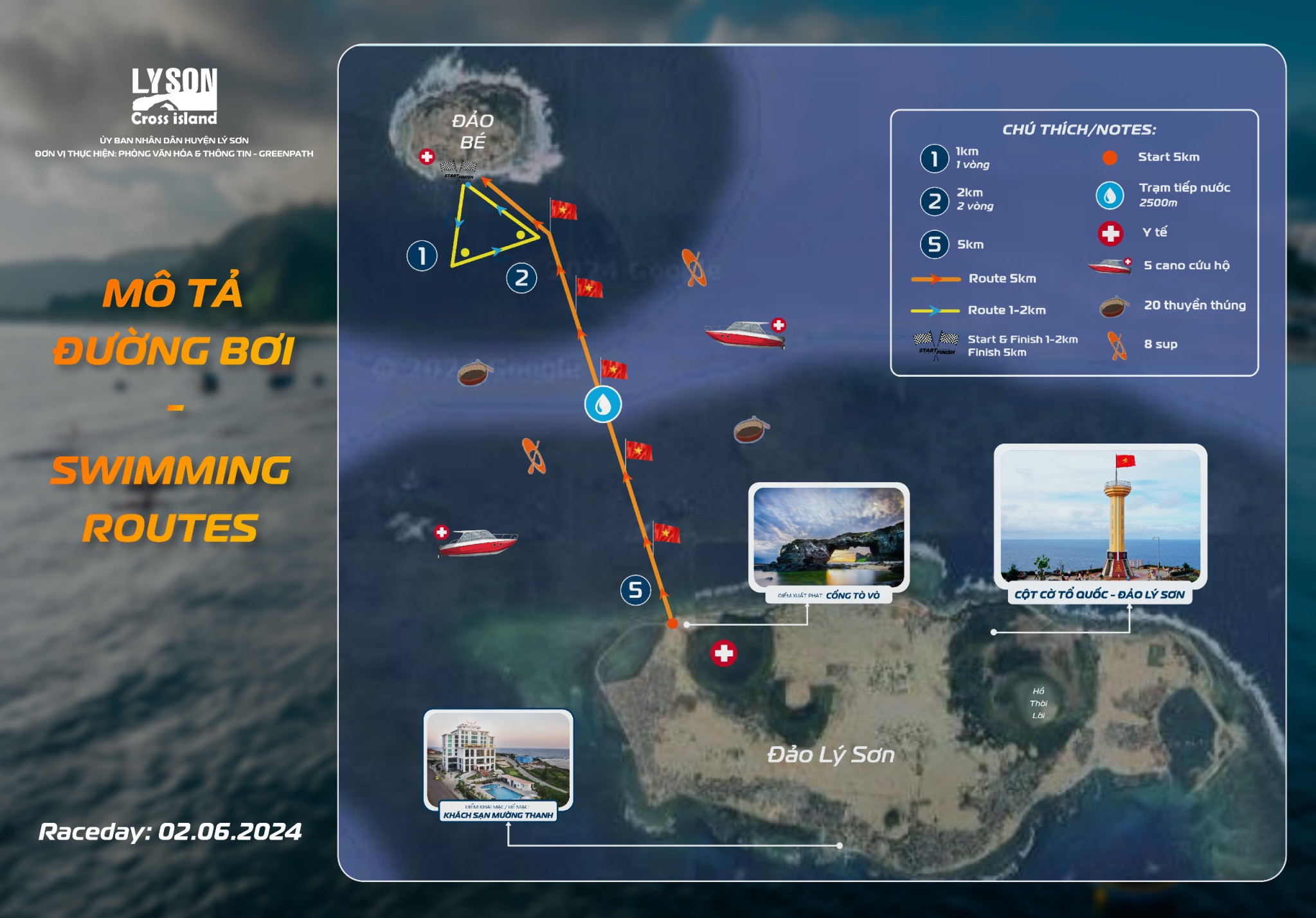 Giải bơi vượt biển Lý Sơn Cross Island 2024 (LSCI) sẽ diễn ra trong 02 ngày 01-02/06/2024 tại huyện đảo Lý Sơn (tỉnh Quảng Ngãi) trên vùng biển nằm giữa hai hòn đảo: đảo Lớn và đảo Bé.