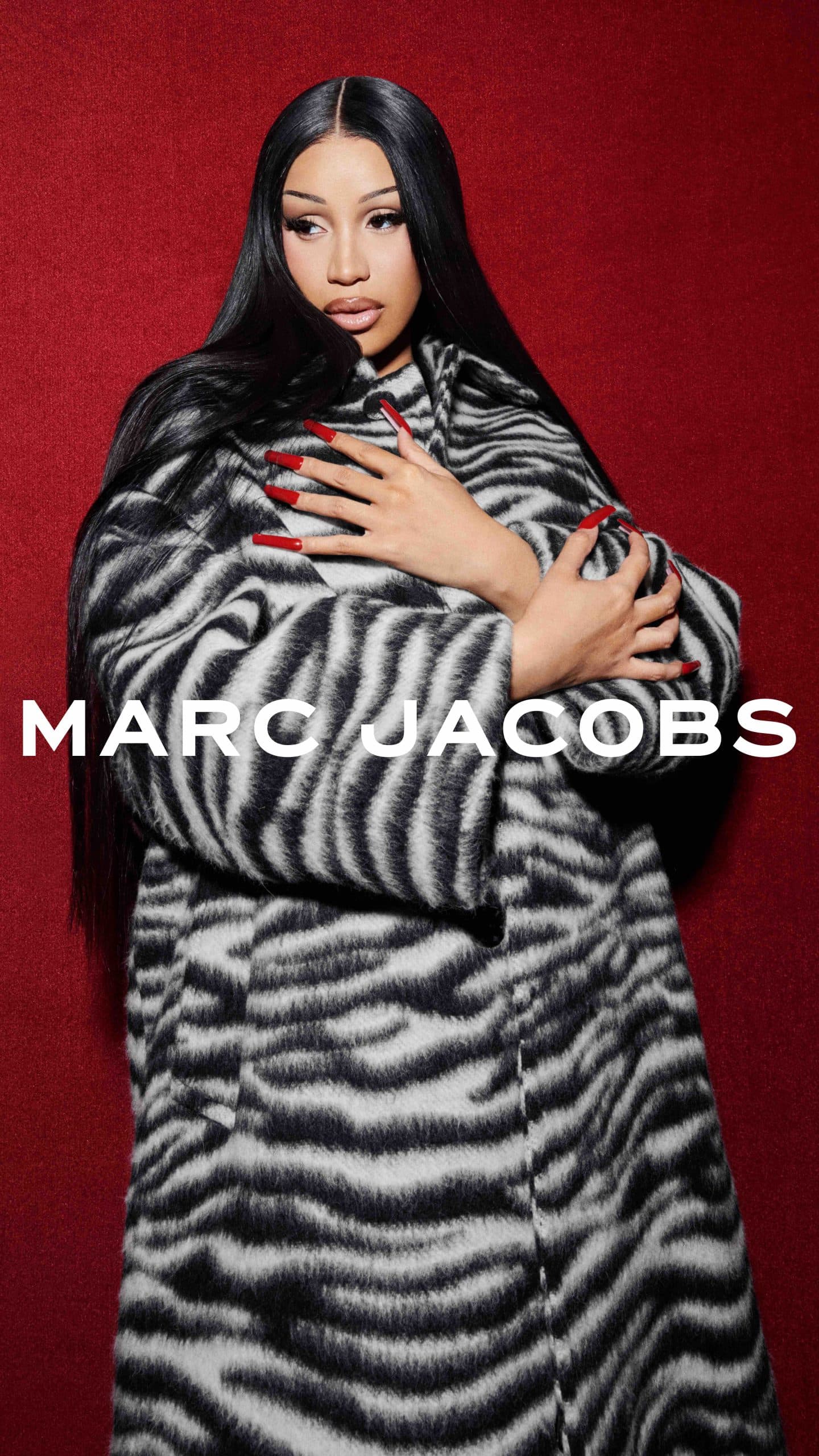 Đầu tiên, Cardi B xuất hiện trong áo choàng giả lông thú và túi The Tote Bag biểu tượng của Marc Jacobs, tươi cười trong bộ ảnh mới. Nữ rapper là tín đồ trung thành bậc nhất của nhà mốt xứ cờ hoa.