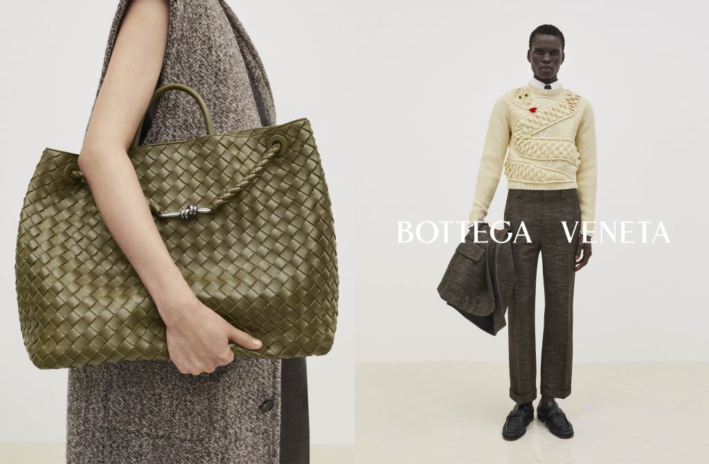 Mang đậm tính sang trọng thực dụng, tủ đồ chớm Xuân của Bottega Veneta hướng tới những món phục trang xa xỉ, thanh lịch thường nhật. Bóng hình di sản xứ Veneto xuất hiện tràn ngập xuyên suốt BST, từ những chiếc túi xách cỡ lớn cho tới tiểu tiết như chiếc cavat bằng da với họa tiết vân cá sấu phần nào tương đồng với những dải da đan intrecciato.