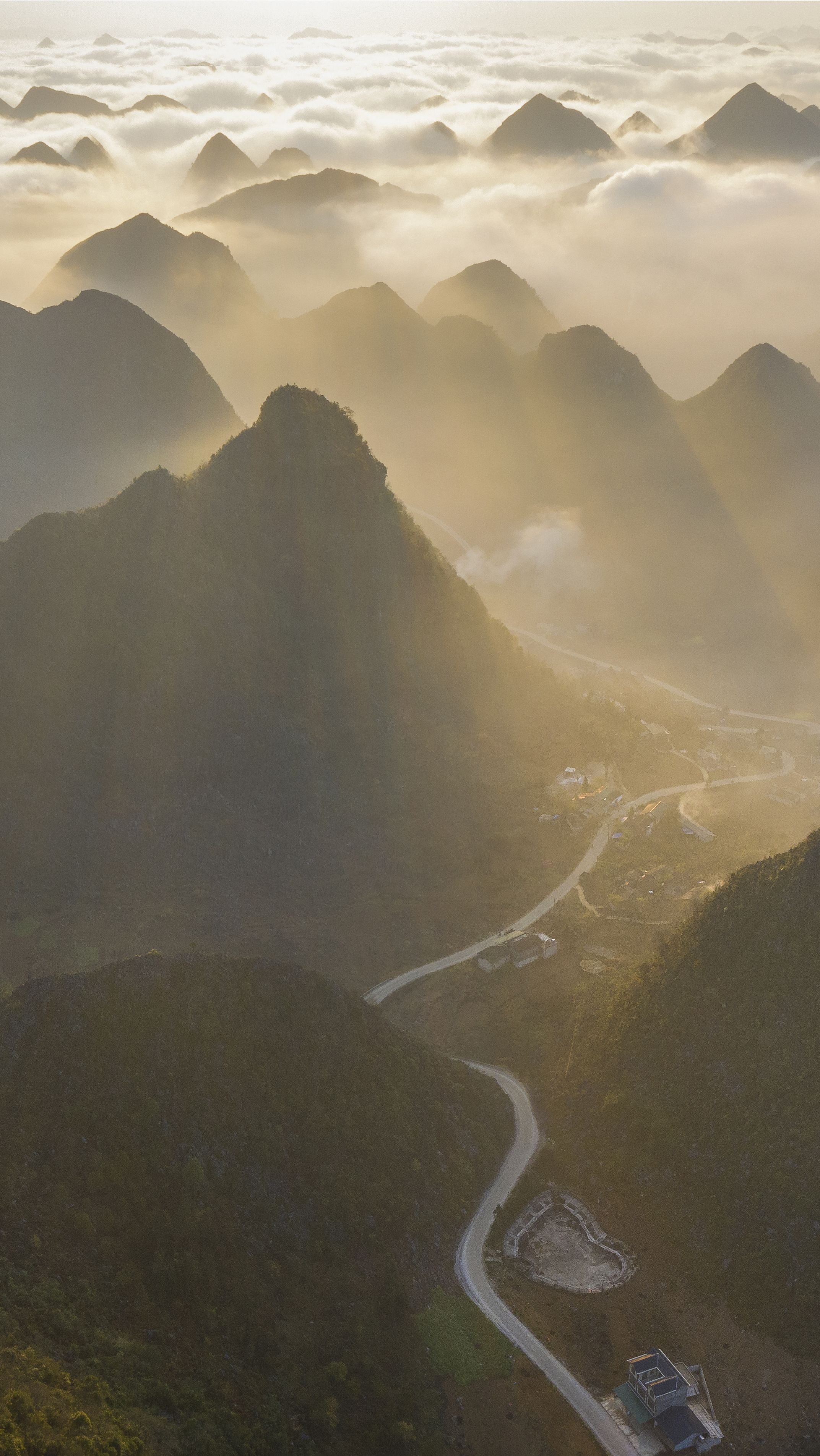 Sà Phìn được ví như cổng trời của cao nguyên đá, cách huyện Đồng Văn 15km về hướng Yên Minh, tôi đã may mắn gặp được khoảnh khắc tuyệt đẹp khi đón bình minh tại đây, được thả hồn bay bổng trên những ngọn núi đá nhấp nhô hòa quyện cùng biển mây bồng bềnh giữa nắng sớm cao nguyên.