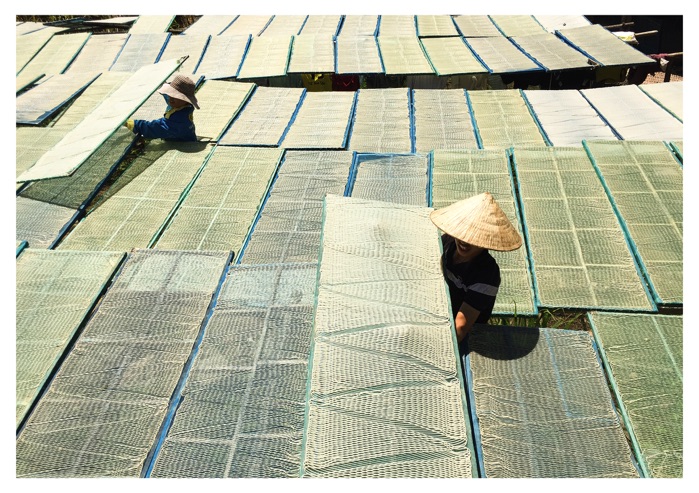 Công đoạn nấu bột cũng vô cùng công phu: nước trộn với bột được nấu lên, khoảng 20 phút thì chín. Trong quá trình nấu, người thợ phải hết sức chú ý đến độ lửa, khi đã đạt đến độ nhất định, người ta thường rút bớt củi để bột chín vừa mà không cháy, sau đó quấy bột cho đều. Bột khi chín có mùi thơm, ăn rất ngon, không có vị chát hay đắng, có thể ăn chơi cùng nước mắm hoặc với đường. Sau đó, bột được trút ra chậu nhỏ, quấy đều và cho vào máy ép. Từng sợi phở sắn trắng ngần dần hiện ra đều tăm tắp dưới máy ép. Công đoạn cuối cùng là công đoạn phơi khô, những sợi phở được dàn đều lên từng vỉ tre hình chữ nhật, xếp ngay ngắn trên từng chiếc cọc đã dựng sẵn. Người dân vẫn tranh thủ những ngày trời nắng to để sợi phở nhanh khô, giòn, màu trong. Từ trên cao nhìn xuống, từng vỉ tre xếp sợi phở sắn bên trên tựa như những mảnh ghép hoàn hảo, lột tả chân thực nhất nét giản dị của người dân nơi đây cũng như sự yên ả, thanh bình của vùng đất này.