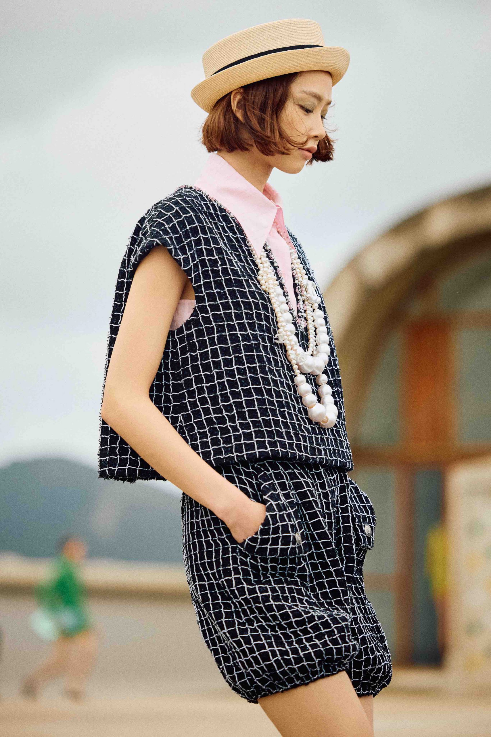 Ngoài mũ trùm đầu có khuy bấm, bộ sưu tập còn tái hiện những đặc điểm của áo hoodie như túi bụng (kangaroo) và mũ trùm đầu trên chiếc váy không tay. Quần short Bermuda có viền thêu, quần biker short bằng vải tweed và áo khoác ngoại cỡ… góp phần hoàn thiện bộ sưu tập nhằm tôn lên năng lượng của sự chuyển động. Tương tự, làn gió biển đầy tự do thổi qua chiếc váy xòe màu trắng và chiếc váy liền thêu hoa khiến cho người xem thêm phần khao khát những ngày nghỉ dưỡng dịu dàng. Đồ bơi cũng nằm trong danh sách các thiết kế không thể thiếu trong các BST Cruise của CHANEL. Với quần bó, quần đùi và váy cut-out, bộ sưu tập mang hơi hướng mùa hè, thể hiện qua “ngôn ngữ” của vải waffle, chân váy lót màu trắng, áo dây đan và các chi tiết thêu chắp nối (patchworks) kiểu broderie anglaise. BST cũng ứng dụng các bản phối layer bao gồm: cổ áo sơ mi, tay áo và áo khoác kiểu Pháp được mặc bên ngoài hoặc bên dưới trang phục khác. Chiếc đầm nhỏ màu đen cũng được sáng tạo với phần áo ngực màu trắng phối cùng đai lưng.