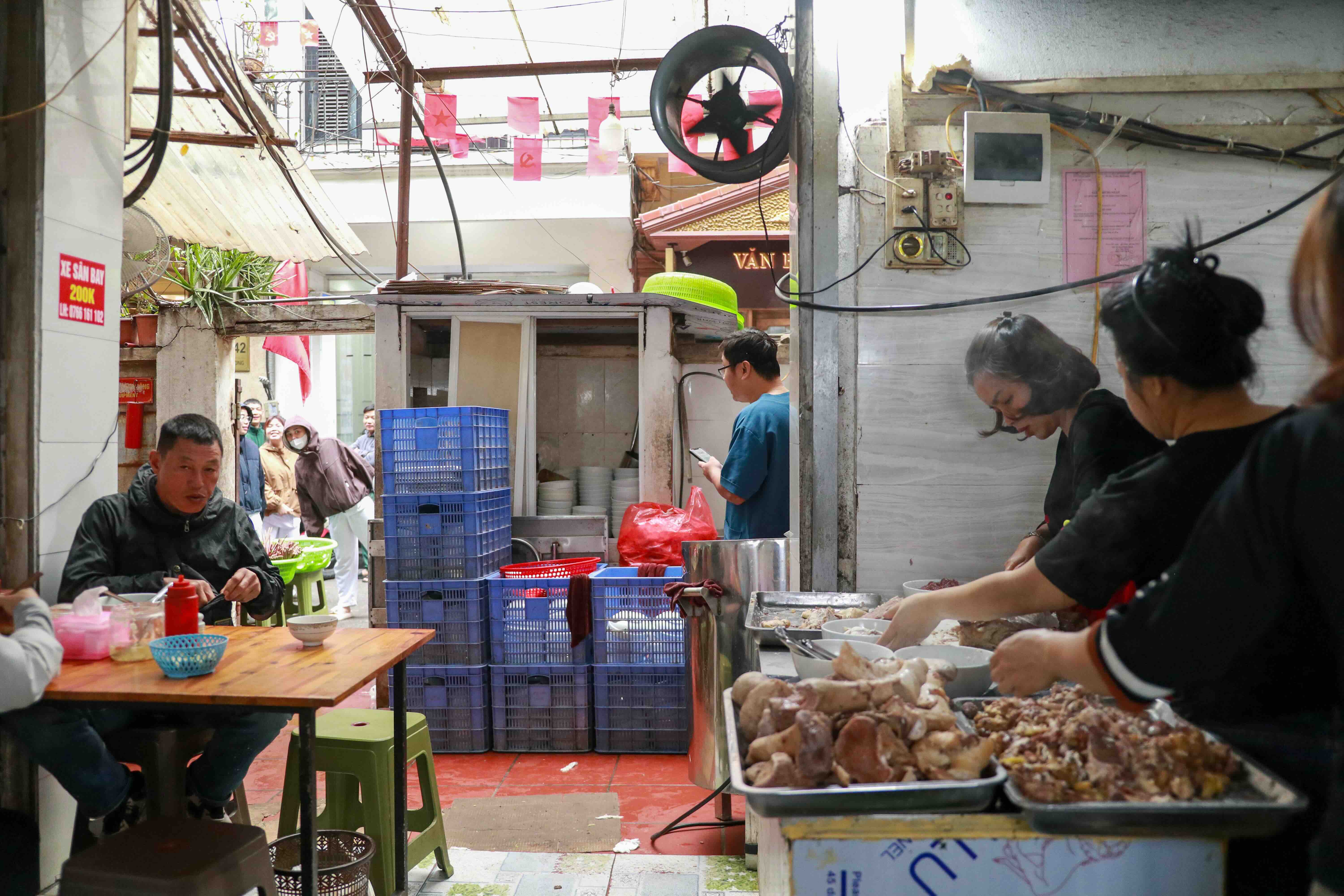Điều làm nên không khí riêng của quán không chỉ là giá rẻ. Khoảng 90% khách ở đây là khách quen. Bà Oanh nhớ khẩu vị của từng người: ai thích nước béo, ai ăn nước trong, ai thích nhiều hành trần, ai ít hành lá. Có hôm đông khách phải chờ 10–15 phút, bà chỉ cười: “Chờ tí nhé, nóng mới ngon”. Người ta quen với việc đợi, quen với cả cái lạnh buổi sáng và cái nóng bốc lên từ nồi nước dùng luôn đỏ lửa.