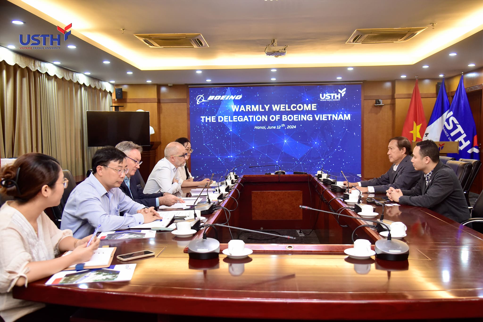 Trong quá trình phát triển, USTH luôn tích cực thiết lập và mở rộng mạng lưới đối tác doanh nghiệp, đặc biệt chú trọng tới việc xây dựng quan hệ hợp tác với hai tập đoàn hàng không vũ trụ hàng đầu thế giới là Airbus và Boeing. Airbus đã tích cực hỗ trợ thành lập Khoa Hàng không và xây dựng các chương trình cử nhân và thạc sĩ Kỹ thuật Hàng không tại USTH. Mới đây, USTH tiếp tục tiến tới trao đổi hợp tác với Boeing. Đây sẽ là bước tiến tiếp theo trong việc không ngừng nâng cao chất lượng chương trình đào tạo gắn với thực tế, tăng cơ hội học tập, trao đổi cũng như việc làm cho sinh viên.
