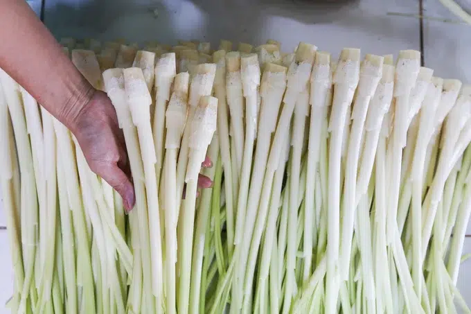 Hẹ nước thì đặc biệt hơn, quanh năm chỉ xuất hiện vào mùa nước nổi. Thân hẹ nước mềm rũ, xốp xốp, phần gốc cắm xuống nước có màu trắng, phần lá có màu xanh thẫm. Lá hẹ nước có vị ngọt thanh mát rượi. Hẹ nước chủ yếu được ăn như rau sống. Bà con miền Tây thường để nguyên cọng hẹ, rồi quấn quanh đầu đũa, chấm ngập trong nước cá đồng kho lạt để cái mặn mà, ngọt ngào, cay nồng thấm hết vào lá hẹ.