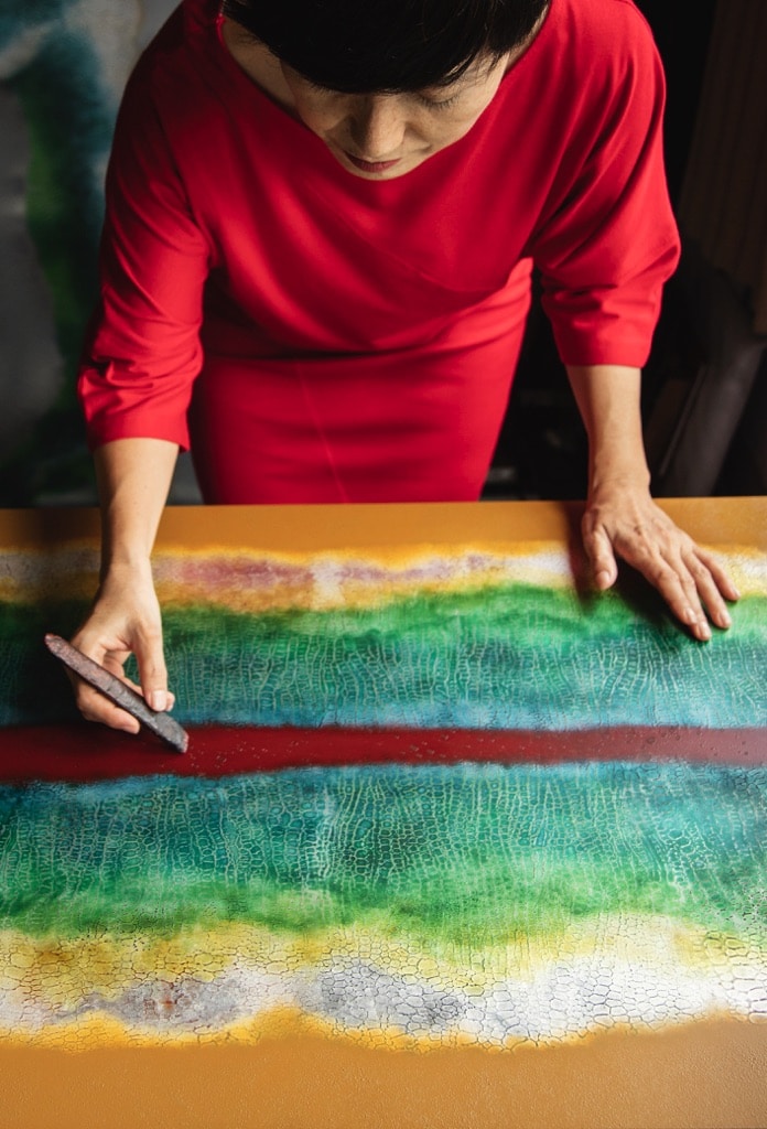 Saeko Ando: Vẽ tranh sơn mài là phương tiện tôi để giải phóng tâm hồn và kết nối với vũ trụ. Đó là lúc tôi cảm thấy tĩnh tâm, vui vẻ và tràn đầy năng lượng nhất. Vì vậy, tôi coi trọng quá trình sáng tạo hơn là tác phẩm đã hoàn thành. Tuy nhiên, đại dịch đã thay đổi tất cả.
