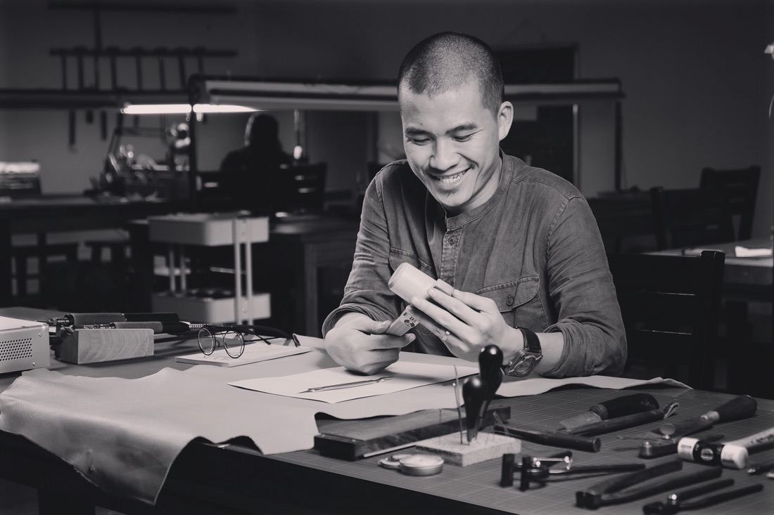 Không giống đôi bàn tay thô ráp mang dấu ấn tuổi đời, tuổi nghề của những thợ thủ công thường thấy, những ngón tay của nghệ nhân Cao Văn Quynh (Cao Quynh) lại thon dài, uyển chuyển khi mang búa cầm đục, cua cắt trên những tấm da thuộc. Từ đôi tay ấy, những tác phẩm đồ da độc bản của những vị khách kín tiếng và kỹ tính nhất ra đời.
