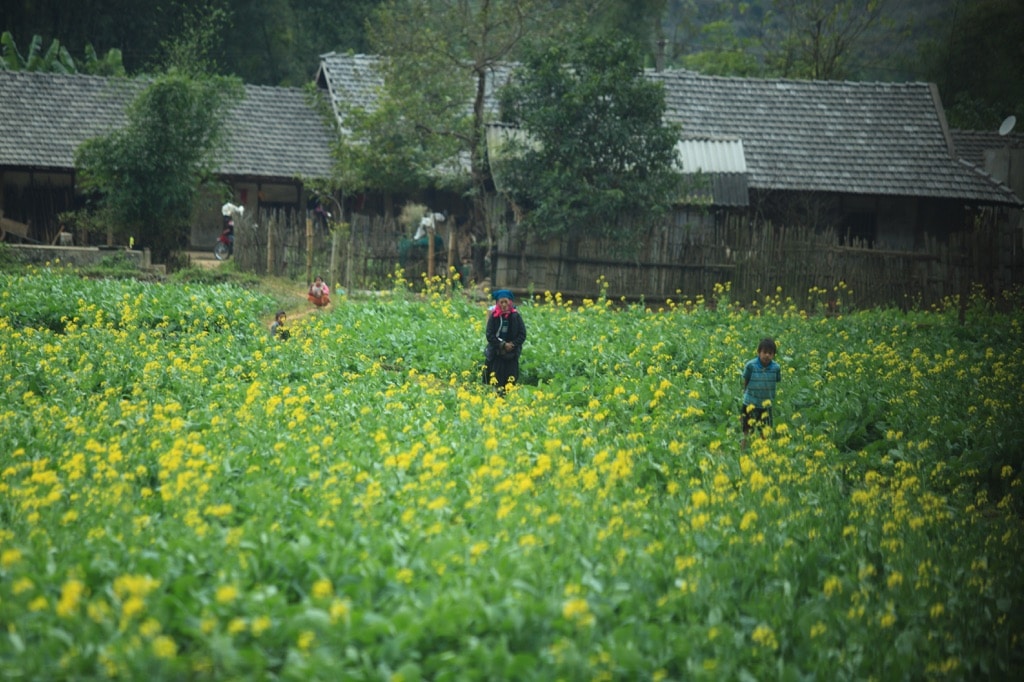 Để đến với Lùng Tám – Hà Giang, xe chúng tôi khó nhọc leo qua những con đèo khúc khuỷu của “cổng trời” Quản Bạ, xuôi xuống thung lũng nhỏ bao bọc bởi những chóp núi cao mây phủ là ngôi làng nhỏ nằm ẩn mình bên sông Miện. Ngôi làng này đã trở thành một hợp tác xã dệt lanh mà những hoa văn nhuộm chàm truyền thống H’Mông được xuất khẩu sang nhiều nước.