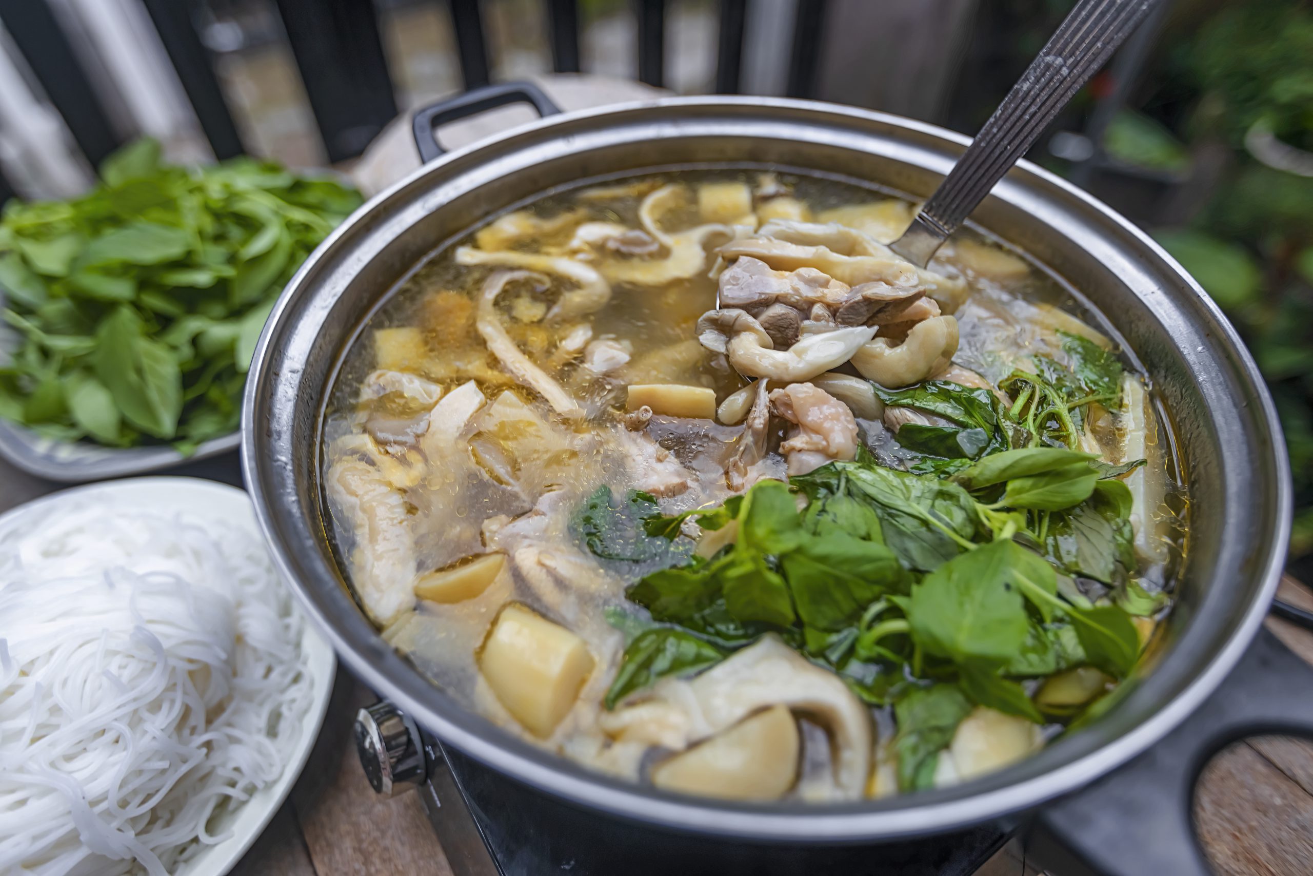 Quán nhỏ nằm ngay bên đường Bùi Thị Xuân. Đà Lạt giờ đã vài con phố mắc đèn giao thông xanh đỏ chứ không còn tự do như xưa nhưng vẫn là một thành phố vắng, nhất là khi màn đêm về. Cô bé phục vụ nhanh nhẹn bê ra suất lẩu cho 4 người. Tôi khẽ mở nắp vung, nước trong nồi đang sôi lăn tăn, nhấp nhoáng những miếng gà chặt gọn chen với những cánh nấm trắng muốt. Đĩa lá é tươi mướt, đĩa bún nhỏ trắng muốt, mấy chén nhỏ đựng gia vị trộn theo một công thức bí truyền nào đó. Ớt xanh và chanh để trong đĩa nhỏ, tùy theo khẩu vị mà thực khách gia giảm. Bạn nhạc sĩ nhanh tay múc cho mỗi người một muôi canh nóng hổi, đoạn làm mẫu hít hà và rồi húp xì xụp. Đang hơi co ro vì cái lạnh của cao nguyên, cơ bắp bỗng chốc như được giãn ra, mềm đi.