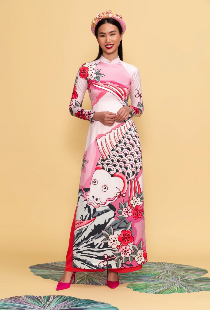 Thủy Nguyễn là cái tên được nhắc đến nhiều vài năm trở lại đây khi nói đến áo dài. Nhà thiết kế này đã tạo ra được những xu hướng áo dài đình đám. Năm 2018, Thủy Nguyễn gây tiếng vang khi ra mắt bộ sưu tập áo dài mang phong cách “Cô Ba Sài Gòn” cũng như dành riêng bộ sưu tập “Xuân” tặng giới mộ điệu với những thiết kế dịu dàng sắc xuân, mang hơi hướng cổ điển nhưng vẫn đong đầy ý thơ. Mùa Tết năm nay, Thủy Nguyễn ra mắt bộ sưu tập “Sen” đậm chất dân tộc, khai thác triệt để hình tượng Sen với các yếu tố dân gian Việt, làm bật nên phong cách truyền thống mà sang trọng, quý phái cho các mẫu áo dài. Vẫn phát huy sở trường là dùng chất liệu gấm, nhưng Thủy Nguyễn khéo léo sử dụng kết hợp in kỹ thuật số để trình bày những họa tiết vẽ tay là các hình tượng dân gian được cách điệu hóa, đặt hài hòa với các chi tiết về hình tượng hoa lá, con giáp của năm…