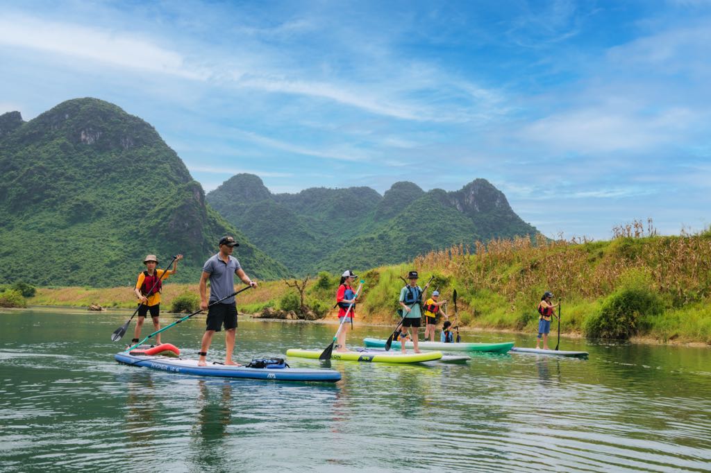 Cũng là tour trekking băng rừng, vượt suối, tắm sông, nhưng “Follow the River” là tên một tour mang lại trải nghiệm khác lạ hơn trên dòng sông với môn chơi ván chèo đứng bơm hơi – SUP.