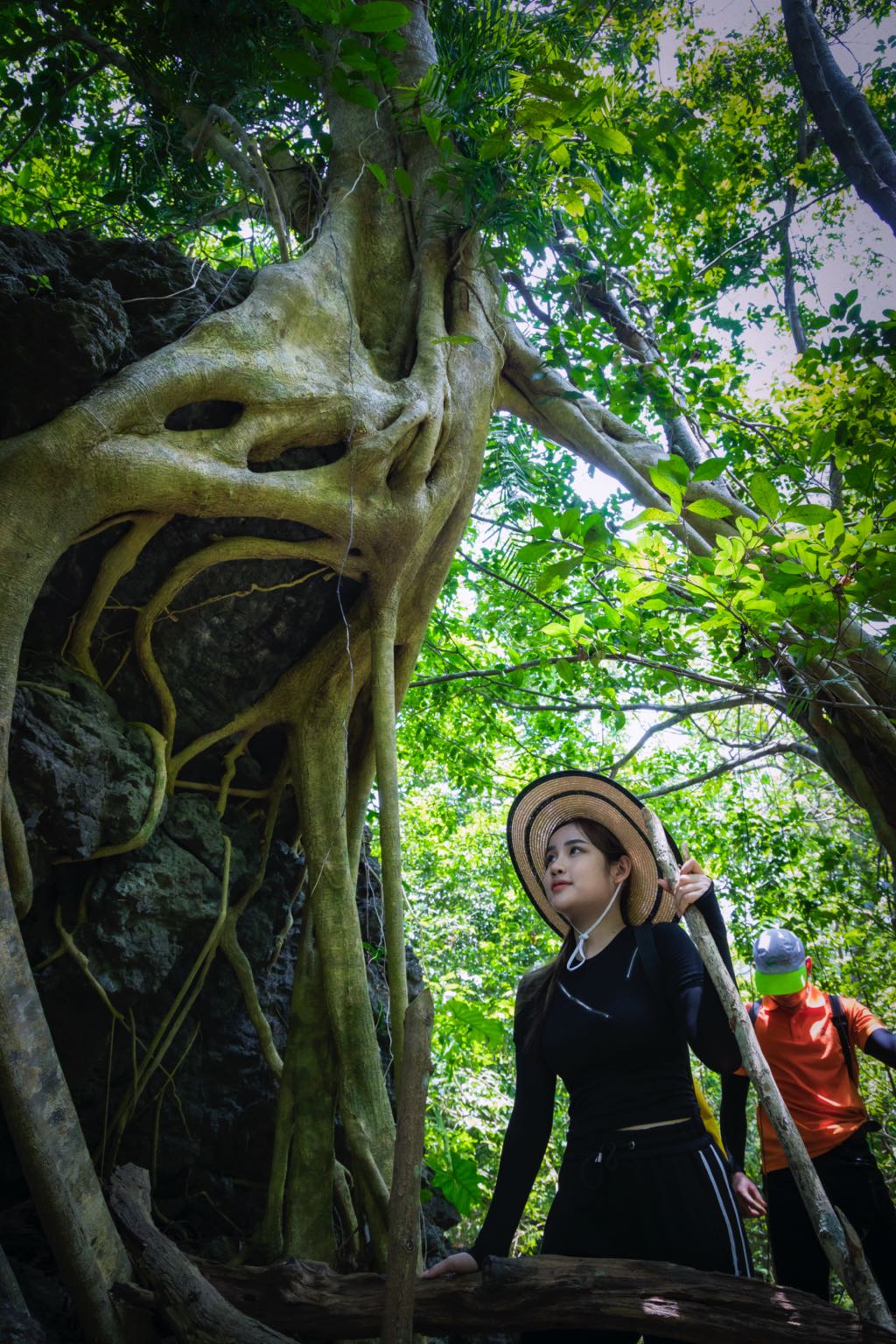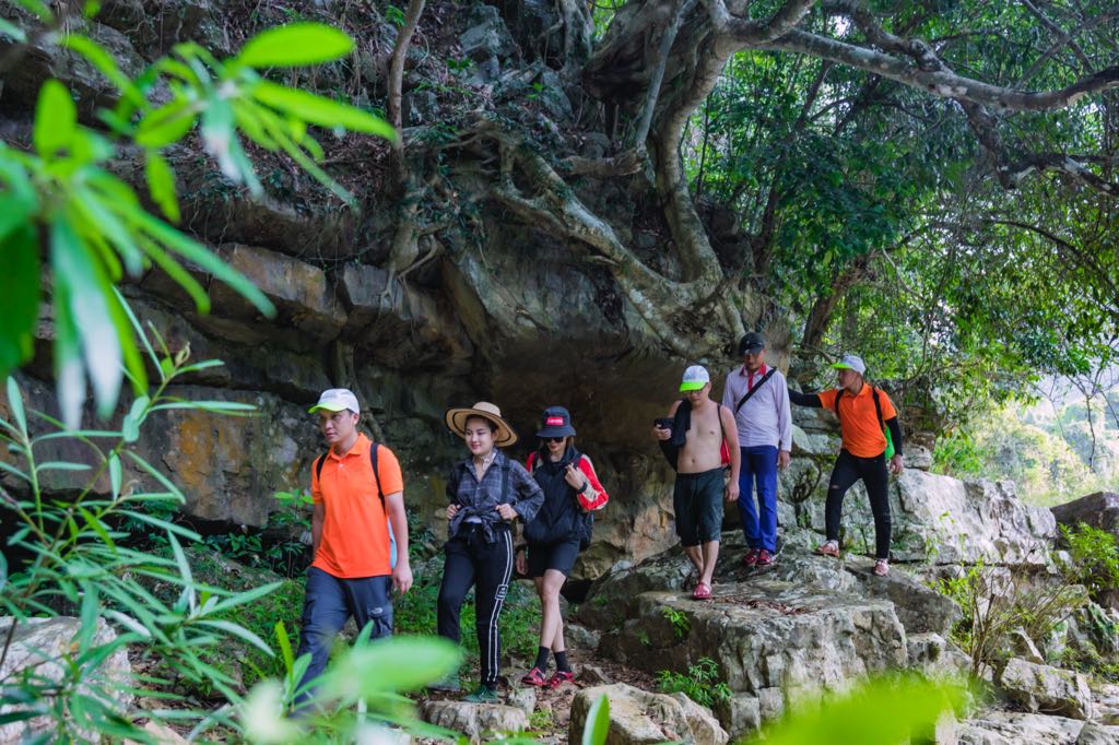 Tất nhiên, trước khi trải nghiệm SUP, tôi cùng các thành viên trong đoàn đã có 120 phút trekking trong Vườn Quốc gia Phong Nha – Kẻ Bàng ở khu vườn thực vật. Ở đây có những gốc lim xanh cổ thụ hay cây Sao, cây Gùa hàng trăm tuổi… Hành trình này cũng đi qua những nơi có cảnh quan tươi đẹp ẩn mình trong rừng nhiệt đới như thác Gió có chiều cao hơn 30m, hồ Vàng Anh đẹp mộng mơ…
