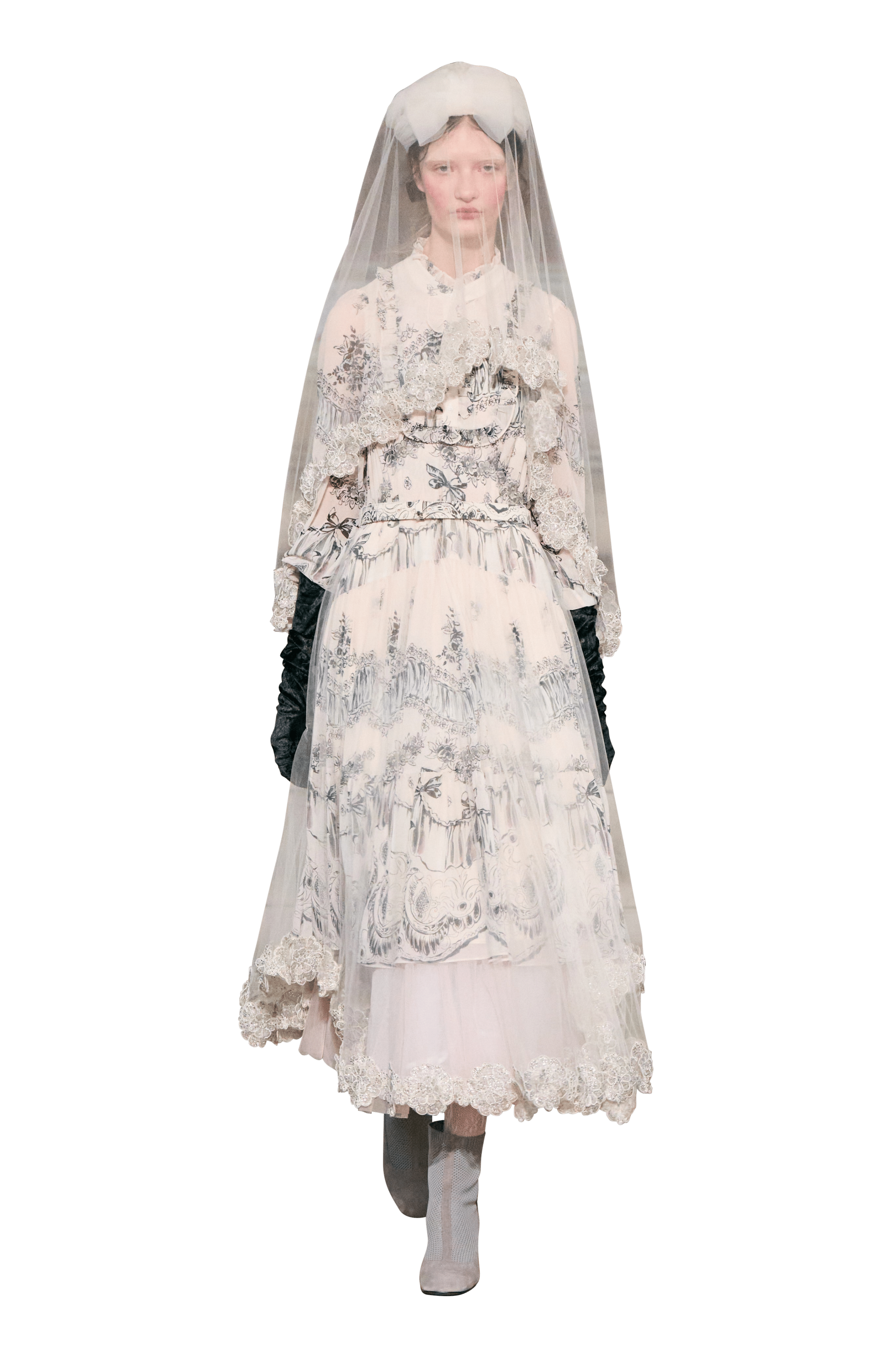 Một xu hướng khác của mùa Thu – Đông 2025 còn là sự lên ngôi của chất liệu ren, mang đến vẻ đẹp lãng mạn, cổ điển và quyến rũ cho các bộ trang phục dạ tiệc. Ren năm nay được sử dụng vào các chi tiết như cổ áo theo phong cách Elizabeth, áo corset định hình, kết hợp cùng chất liệu ren xuyên thấu và đường cắt táo bạo.
