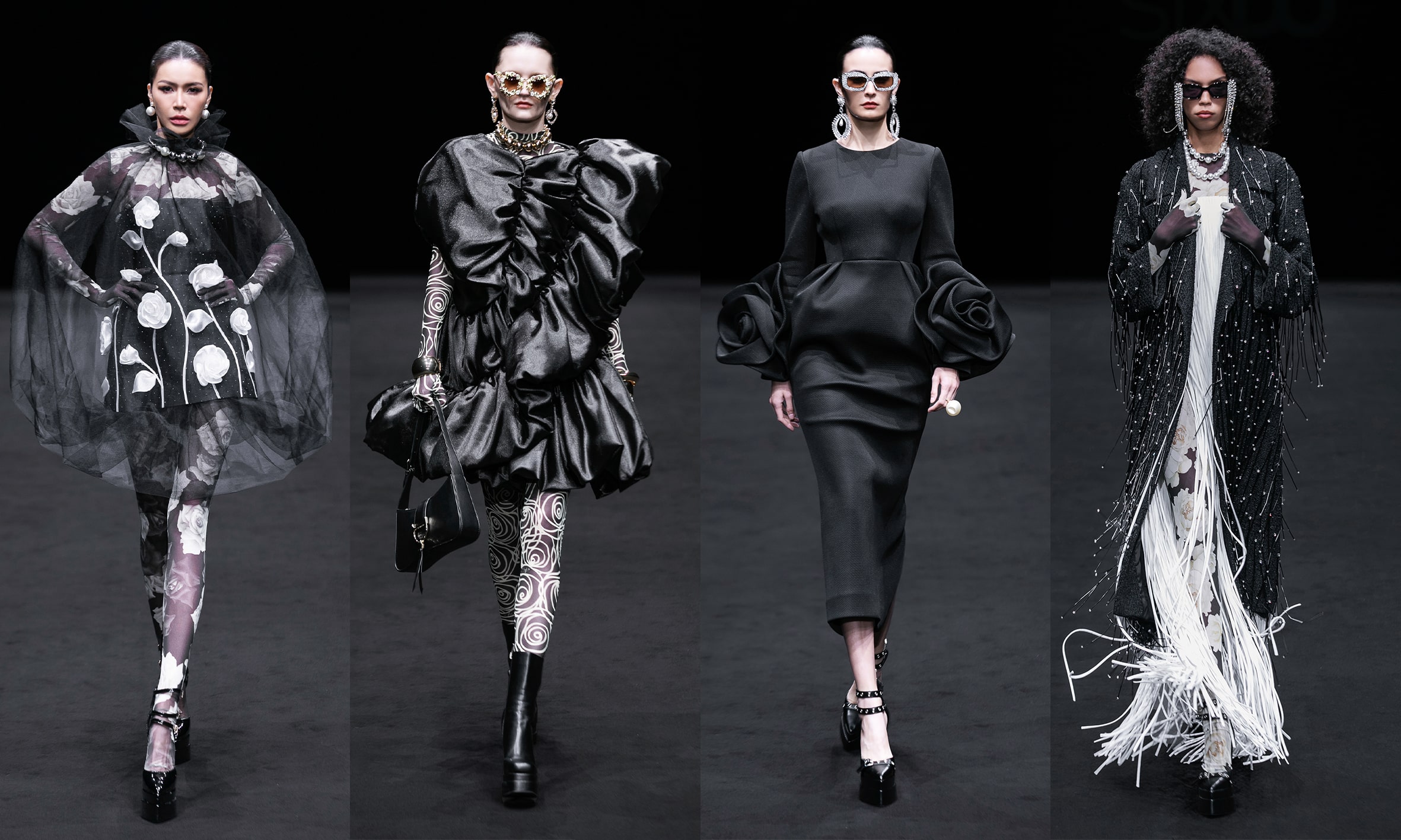 NTK phát triển nhiều thế mạnh của anh trong BST lần này như: kỹ thuật dựng phom 3D, trang phục bất đối xứng, trang phục hoa 3D, thiết kế Avant – Garde; kỹ thuật xếp ly tinh tế… Chất liệu và bảng màu anh sử dụng trong BST cũng rất đa dạng, phải kể đến như voan, lưới, tafta, cotton, gấm, tweed ở các sắc trắng, đen, be, tím, hồng, đỏ, vàng…
