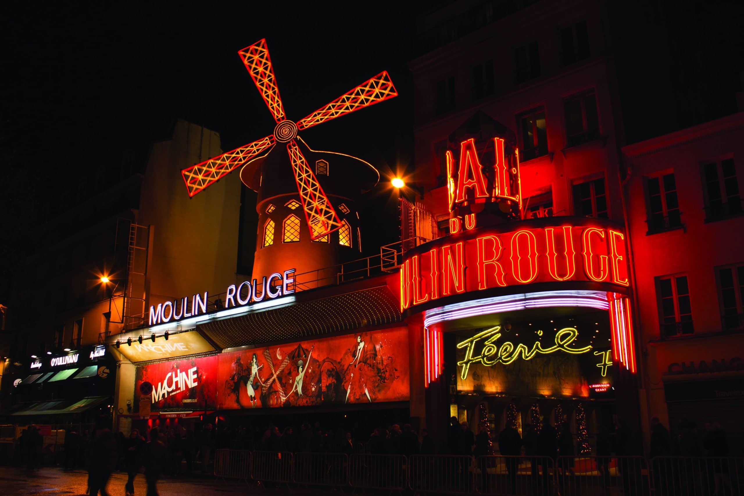 Moulin Rouge trong tiếng Pháp có nghĩa là “Cối xay gió màu đỏ”. Đây là một tiệm hát cabaret nổi tiếng ở Paris (Pháp) và được xây dựng trong khu phố “đèn đỏ” gần đồi Montmartre. Hàng trăm năm qua, Moulin Rouge được biết tới với hình ảnh biểu tượng cối xay gió đỏ cùng các vũ nữ chân dài trong điệu nhảy Cancan. Năm 2001, đạo diễn Baz Luhrmann thực hiện bộ phim ca nhạc “Moulin Rouge!” – bộ phim giành hai tượng vàng Oscar và được đề cử “Phim hay nhất”.