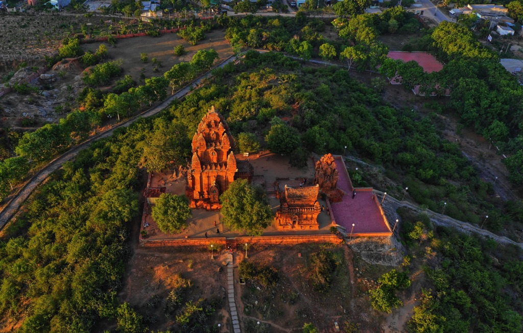 Không chỉ có biển xanh, cát trắng, Ninh Thuận còn nhiều điểm đến ấn tượng khác. Kiến trúc nổi bật và thu hút du khách nhiều nhất nằm ngay ở thành phố Phan Rang – Tháp Chàm là tháp Po Klong Garai. Được xây dựng vào khoảng cuối thế kỷ 18, đầu thế kỷ 19 và nằm trên đồi Trầu, một kiến trúc tiêu biểu của văn hóa Chăm pa cổ. Trong ánh hoàng hôn cuối ngày, tháp Chàm Po Klong Garai ấn tượng bởi màu gạch Chăm hay lối kiến trúc hình vòm, chóp nhọn và phù điêu trang trí tinh xảo.