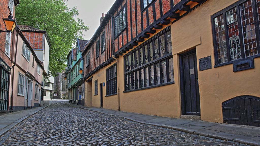 Xung quanh nhà thờ Norwich còn có những con đường rải sỏi đẹp tự tranh vẽ như Timber Hill, Tombland và đặc biệt là Elm Hill – một trong số những con đường được bình chọn là đẹp nhất tại Vương quốc Anh với những tòa nhà nhiều màu sắc vẫn giữ được một phần sự nguyên vẹn từ thời Tudor. Một nơi thiên đường cho những khách du lịch đam mê chụp ảnh. Trên con đường này, bạn nên ghé qua quán café lâu đời Briton’s Arms nằm ở tòa nhà duy nhất còn nguyên vẹn sau đám cháy vào năm 1507 của con phố để thưởng thức hương vị trà chiều Anh truyền thống.