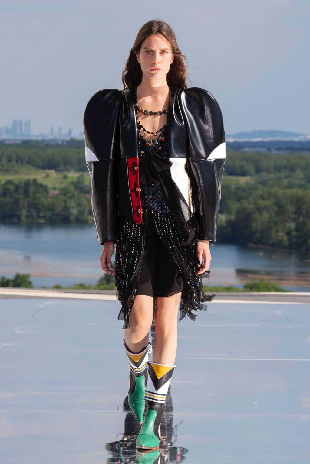 Các trang phục mùa Cruise 2022 của Louis Vuitton đều mang đậm phong cách tương lai – “futuristic” – với các tông màu rực rỡ, cách phối màu ngẫu nhiên và những kiểu dáng lạ mắt, độc đáo. Từ những chiếc áo khoác to bản, dáng xòe được in hoạ tiết của vũ trụ, những chiếc áo cầu vai phồng sinh động cho đến những bộ cánh ánh kim, da bóng đều mang đến sự phá cách mới mẻ cho bộ sưu tập nhưng vẫn không làm mất đi vẻ cao cấp và thời thượng vốn có. Cùng phụ kiện là những đôi bốt da màu sắc, Giám đốc sáng tạo Nicolas Ghesquière như muốn gửi gắm thông điệp về một ngày mai tươi sáng qua những sải bước catwalk mạnh mẽ tới không gian “tương lai” mà ông tạo ra trong show diễn của mình.