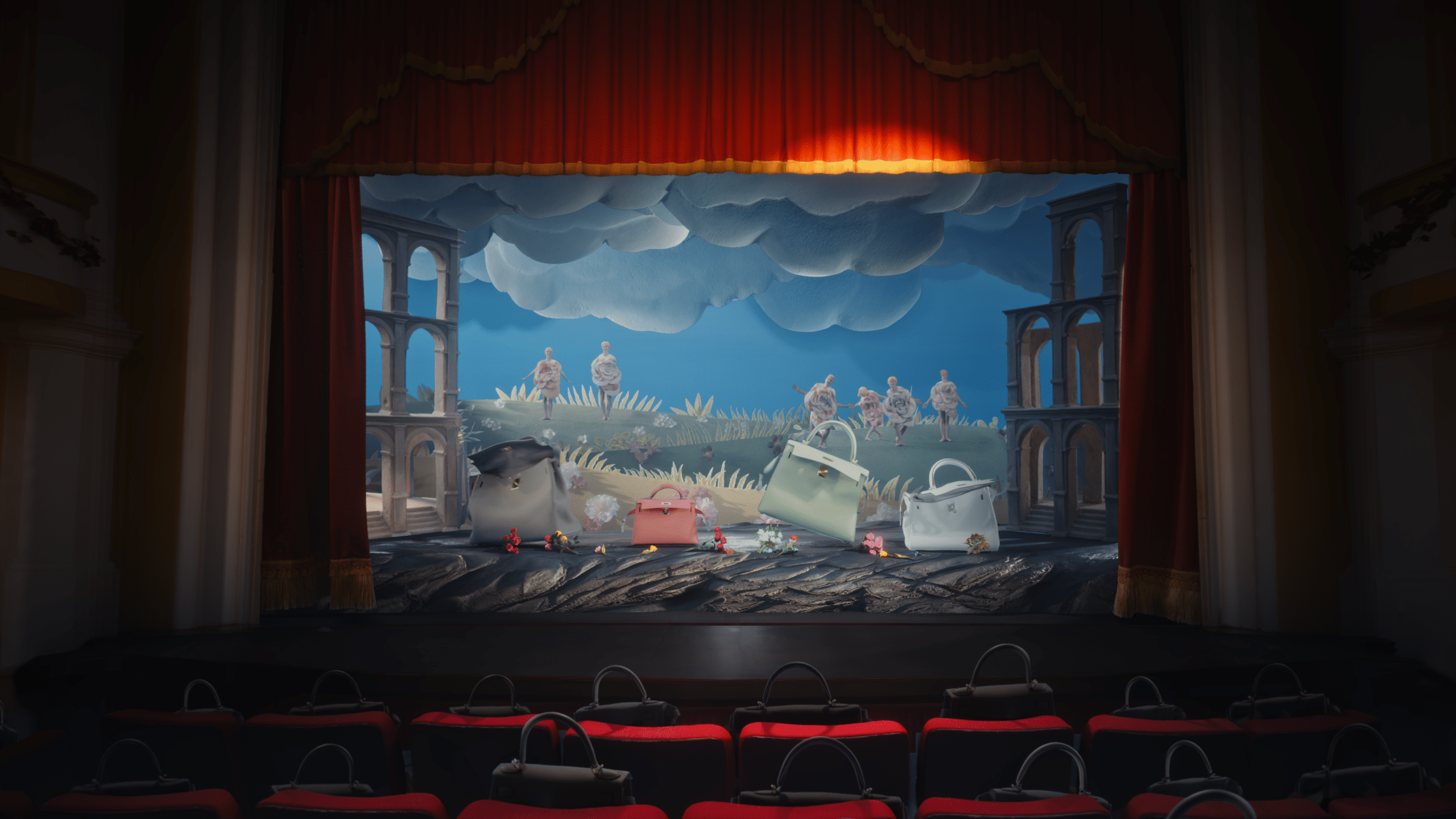 Với khán giả, họ sẽ trải qua 6 câu chuyện cuốn hút được kể bằng ngôn ngữ hình thể sáng tạo của nghệ thuật sân khấu kết hợp với nghệ thuật kể chuyện trong điện ảnh. Không dùng những hiệu ứng công nghệ cầu kì mà thay vào đó là những thủ thuật với máy quay, hiệu ứng khói do chính con người điều khiển. Trong bộ phim “On the Wings of Hermès” đôi tay con người biến thành những sáng tạo thực thụ trên màn ảnh: đôi tay múa trong những chiếc găng Hermès, đôi tay nhảy nhót trên sân khấu, đôi tay khéo léo điều chỉnh những chiếc túi Hermès Kelly, đôi tay họa tranh cát. Kết hợp với những đôi tay hạnh phúc là tiếng hát opera, là giọng kể chuyện trầm ấm mê hoặc, là những vũ đạo múa đầy cảm xúc… tất cả chỉ được “cất cánh” bay xa từ sự nhẹ bẫng của tâm hồn và trái tim.