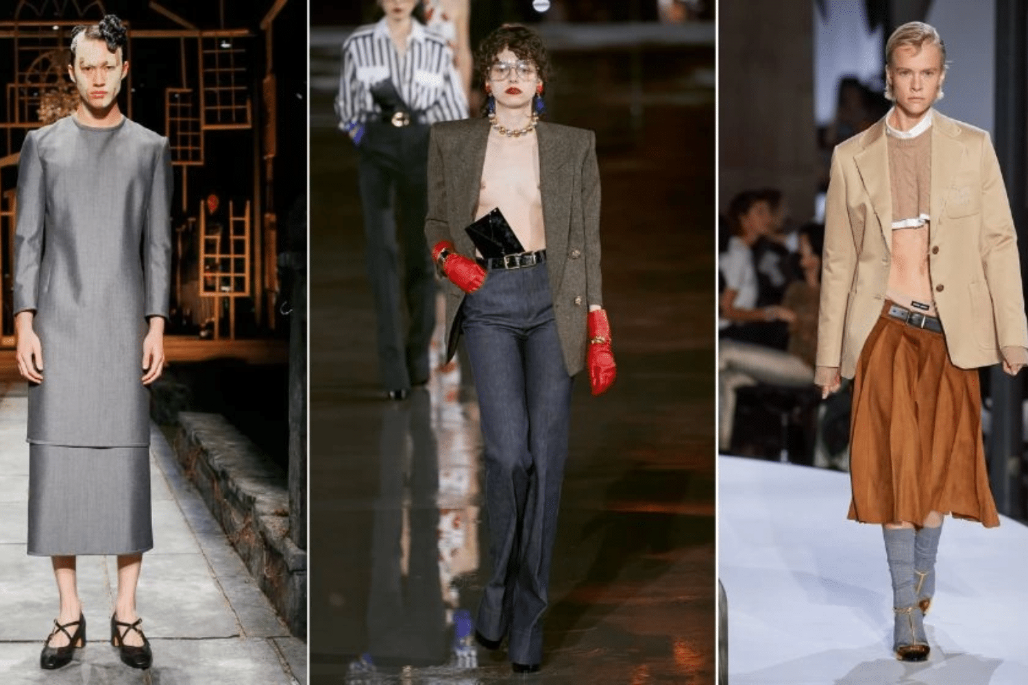 Ý tưởng về trang phục không phân biệt giới tính thực chất đã manh nha từ khá lâu. Những năm 60, nhà tạo mốt người Pháp Pierre Cardin gây ấn tượng với những chiếc váy phom dáng hình hộp cho nữ giới. Thập niên 70, huyền thoại David Bowie làm cả thế giới chấn động với phong cách pha trộn độc đáo giữa nam và nữ. Gần hơn nữa là những chiếc “boyfriend jeans” (quần jeans bạn trai) xuất hiện dày đặc trong các bộ sưu tập thời trang nhanh vào cuối những năm 2000.