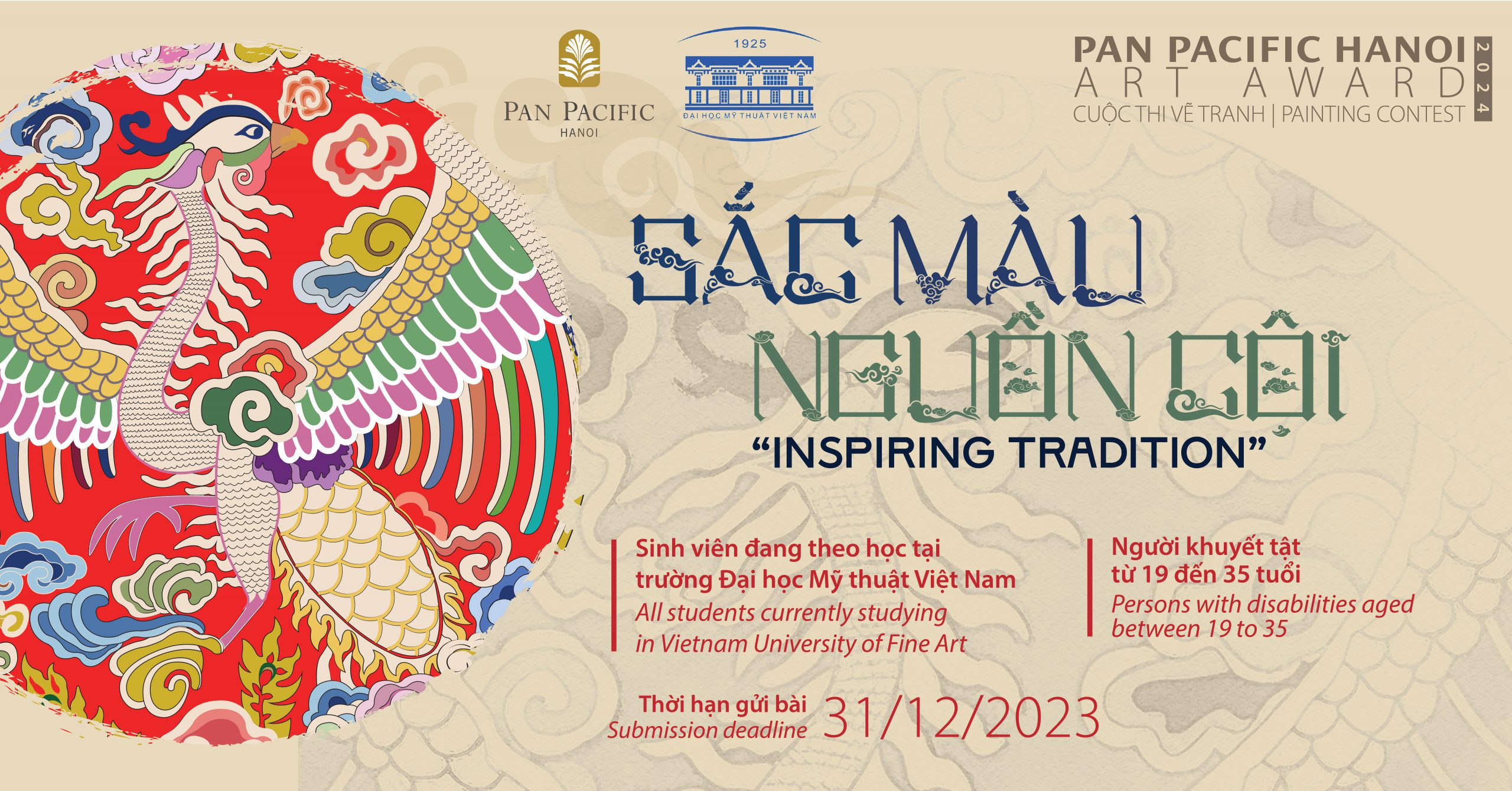 Khách sạn Pan Pacific Hà Nội chính thức giới thiệu dự án Giải thưởng Nghệ thuật 2024, thông qua cuộc thi vẽ tranh “Sắc Màu Nguồn Cội” kết hợp với Đại học Mỹ Thuật Việt Nam. Cuộc thi được tổ chức nhằm tạo sân chơi bổ ích cho người khuyết tật, góp phần khơi dậy niềm đam mê hội họa, tư duy sáng tạo nghệ thuật, đưa các tác phẩm của họ đến gần hơn tới cộng đồng.