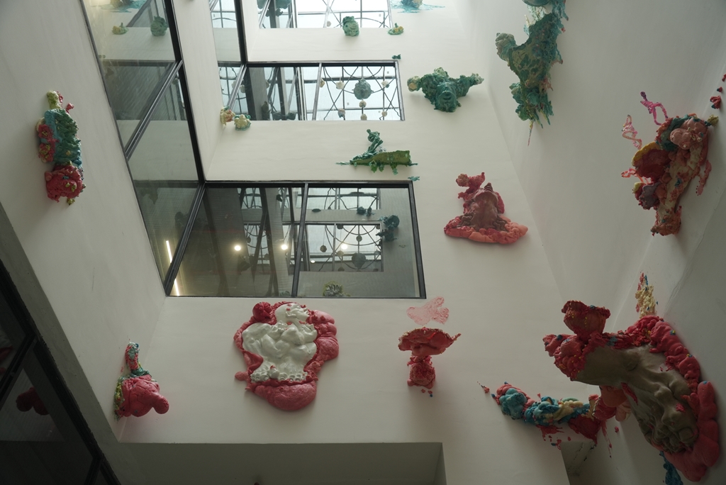 Đến với Toong Phan Bội Châu, ấn tượng nhất sẽ là tác phẩm điêu khắc cao 15 mét mang tên Dị nhân. Một năm trước, nghệ sĩ điêu khắc Đỗ Hà Hoài nhận được “đề bài” từ Toong về một tác phẩm điêu khắc lớn sáng tác tại khu vực giếng trời thông 5 tầng của tòa nhà. Sau đó là quá trình làm việc miệt mài của người nghệ sĩ, từ xưởng tại TP. Hồ Chí Minh đến làm việc thực tế tại Toong Phan Bội Châu. Bộ tác phẩm độc bản dần hình thành gồm 50 khối tượng điêu khắc được lấy cảm hứng từ dị ứng bên trong cơ thể, từ đó phản chiếu ra mỗi trường xung quanh. Đến hôm nay, Dị nhân hoàn thiện và trở thành tác phẩm sắp đặt tạo hình lớn nhất trong sự nghiệp của Đỗ Hà Hoài.