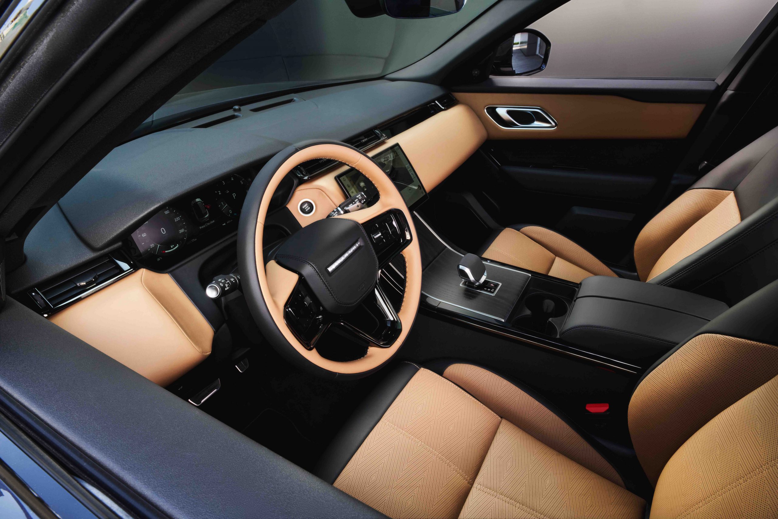 Bên trong, nội thất của Range Rover Velar hiện lên với sự táo bạo và thanh lịch, được tối giản hóa hơn nữa nhờ vào tay nghề thủ công tinh xảo và các vật liệu mới cao cấp. Bản nâng cấp mới nhất của hệ thống thông tin giải trí Pivi Pro7 nổi bật với màn hình kính cong 11,4 inch, được thiết kế đặt cao hơn và dễ tiếp cận hơn, giúp giảm thiểu sự phân tâm và hiện tượng phản chiếu ánh sáng.