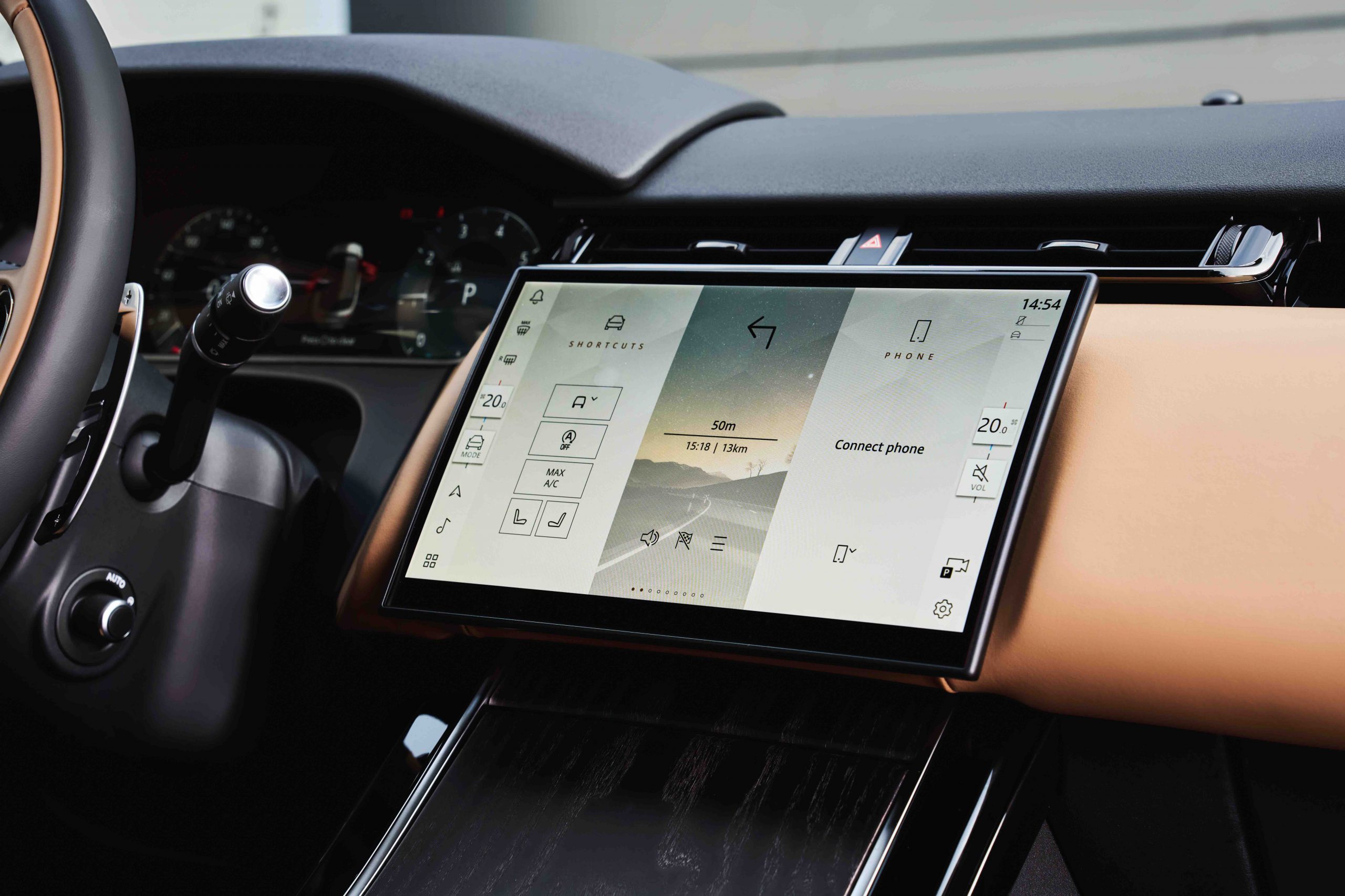 Range Rover Velar mới là mẫu xe đầu tiên được trang bị hệ thống thông tin giải trí Pivi Pro7 thế hệ tiếp theo. Hệ thống này tích hợp tất cả các điều khiển cho các chức năng chính của xe vào màn hình cảm ứng kính cong 11,4 inch, với thiết kế tinh giản mang đến cảm giác như chiếc màn hình đang lơ lửng giữa không trung.