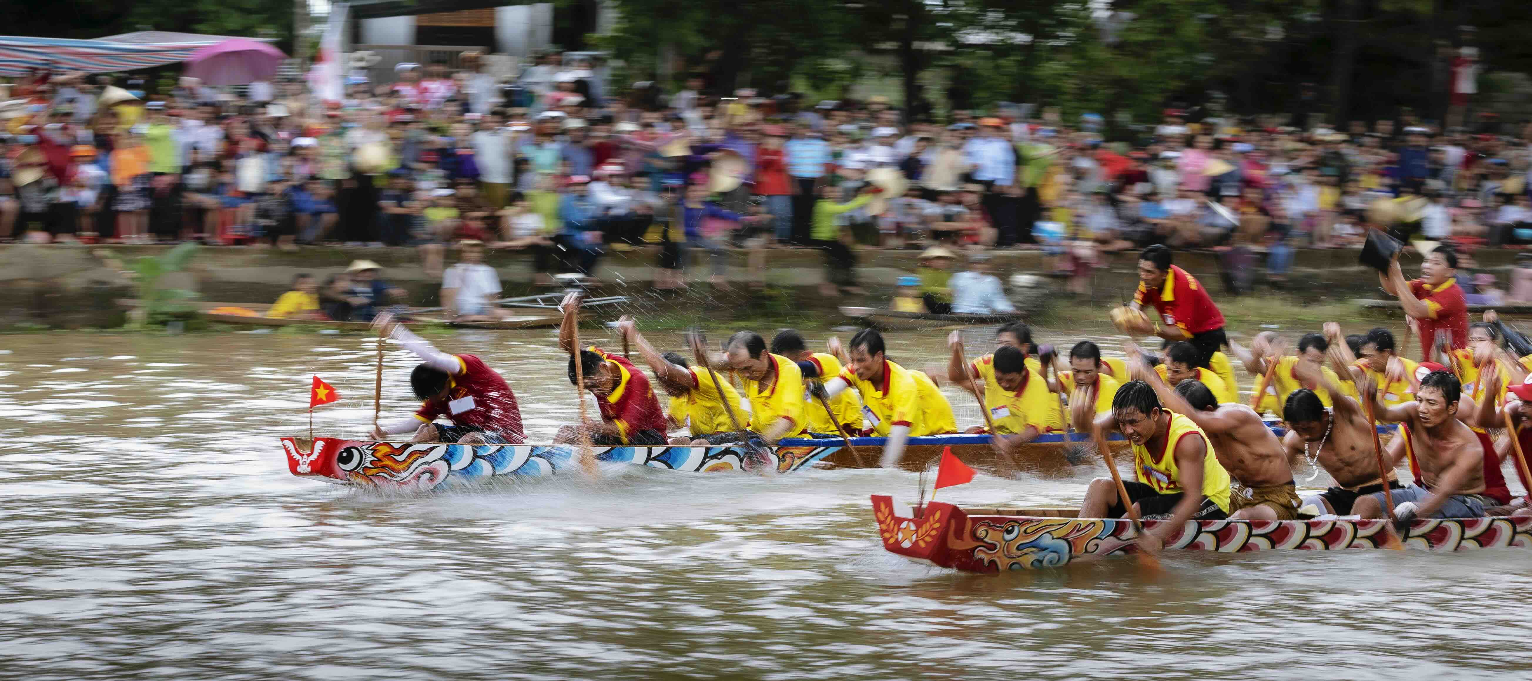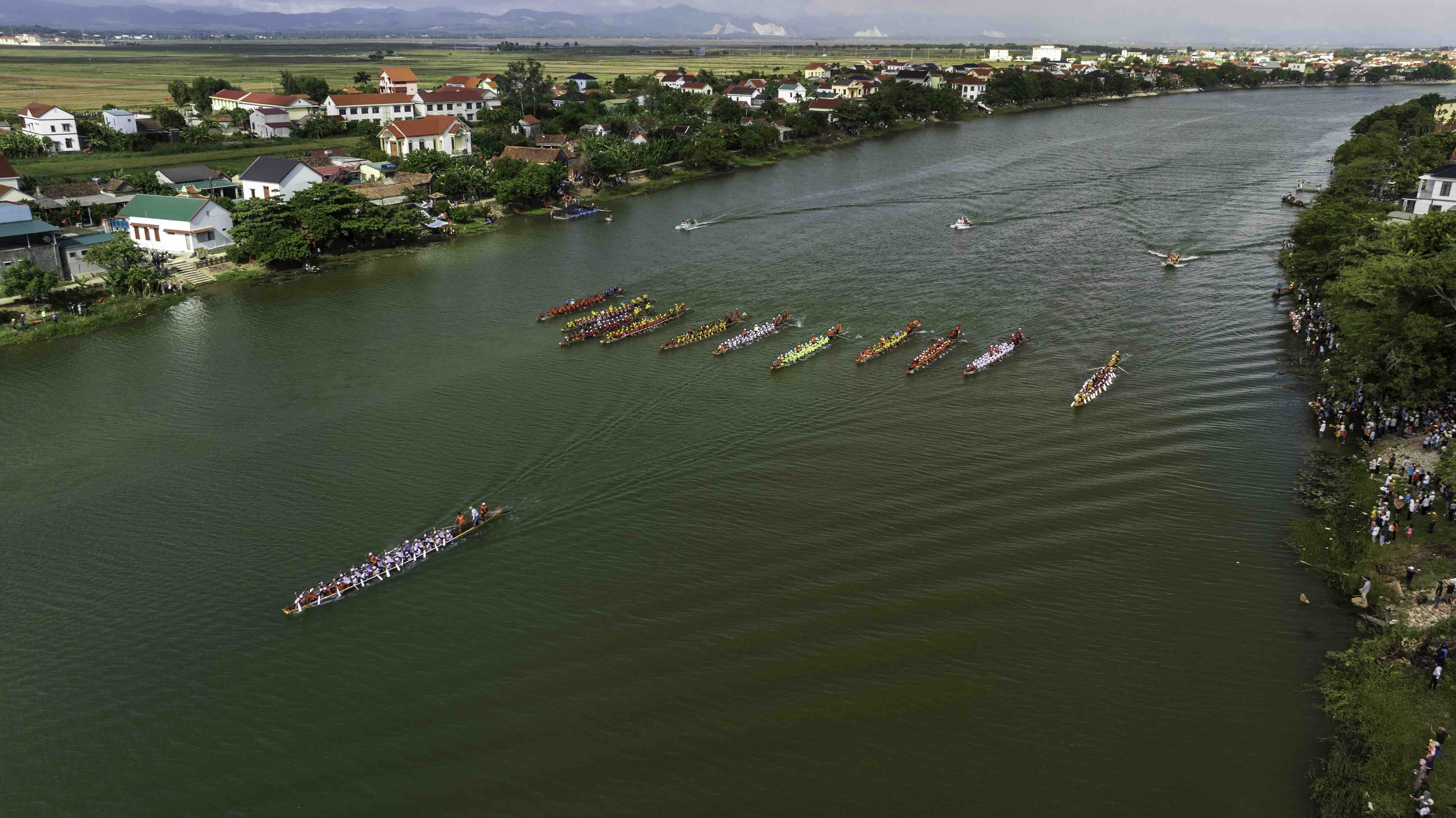 Dưới sông bơi chải, nhà nhà cờ bay