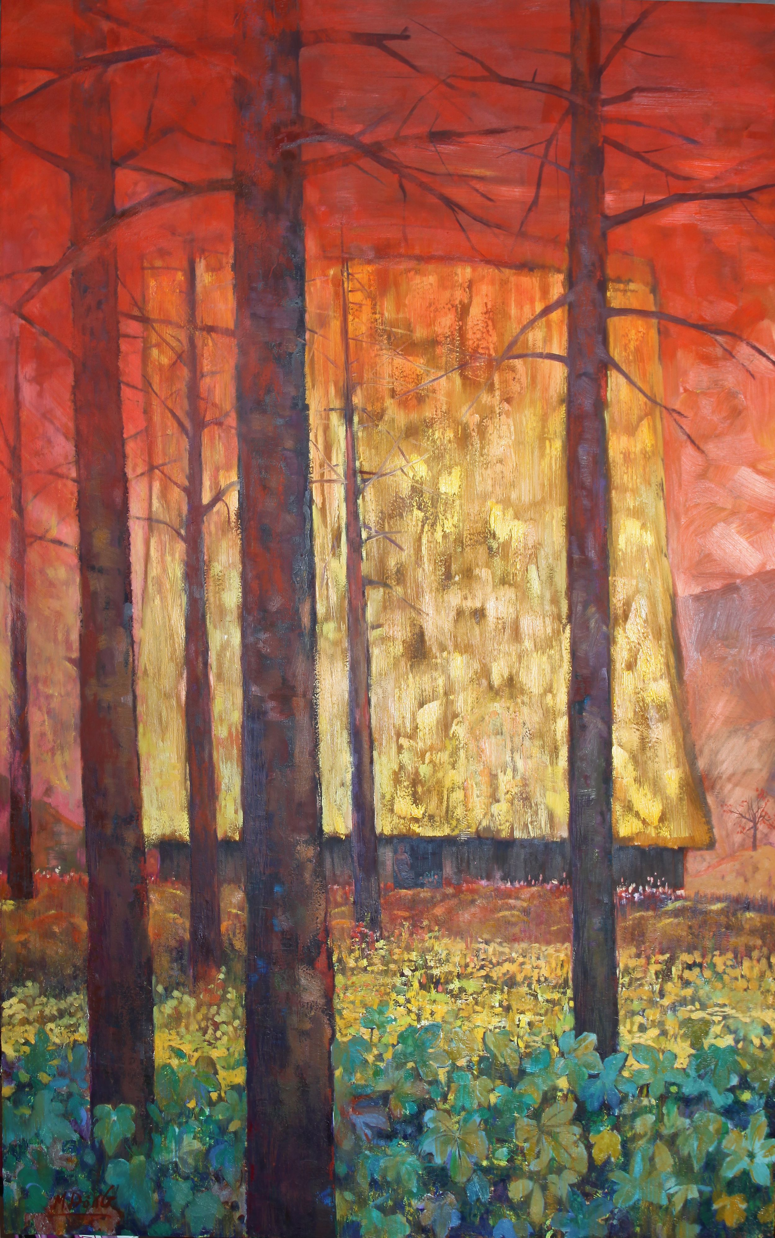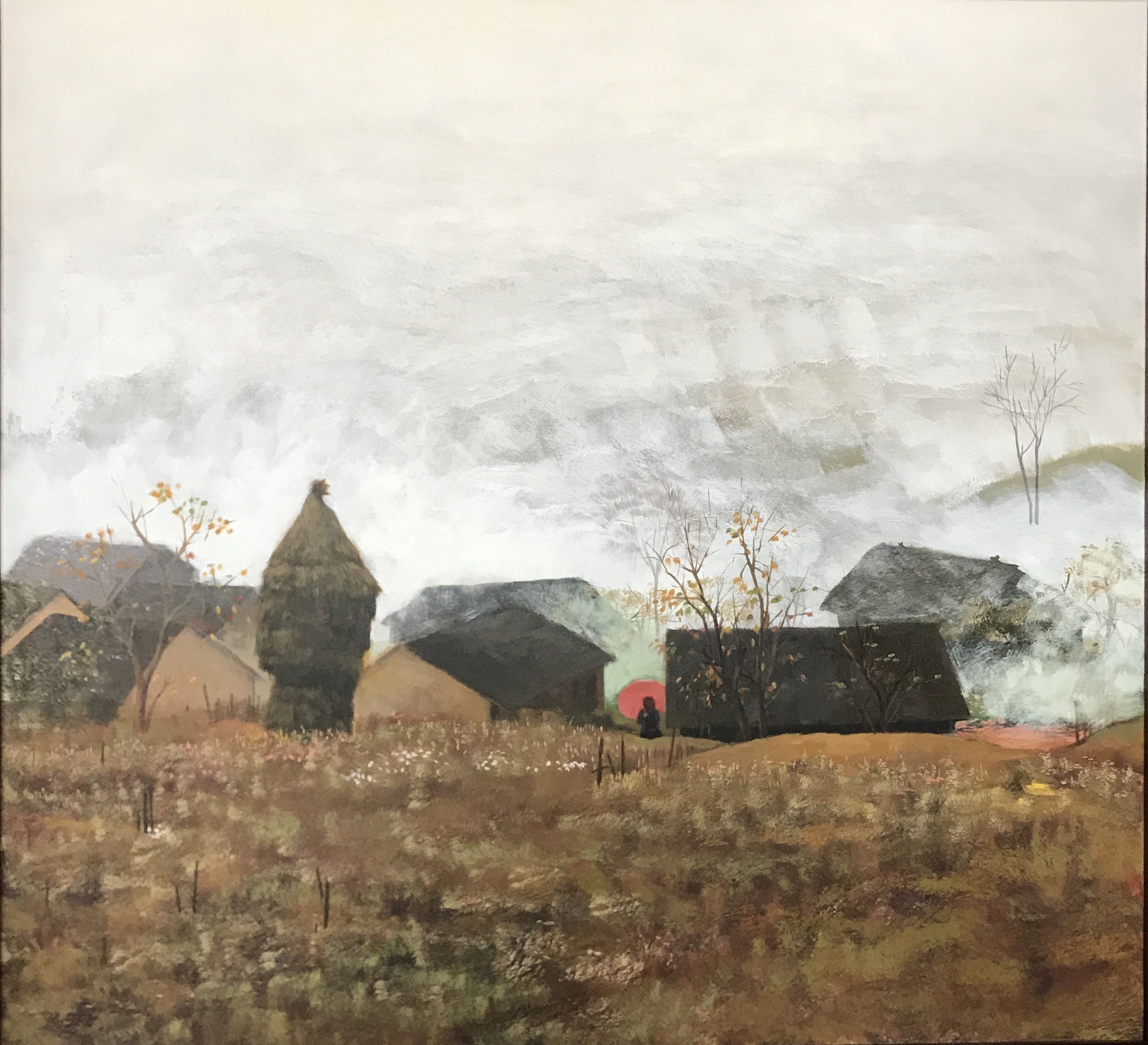 Với cái nhìn hiện thực, các tác phẩm “Tây Nguyên” của Chu Viết Cường, “Bên rừng” của Nguyễn Minh Đông lại đưa người xem vào không gian bình yên với mái nhà rông, những bóng cây cao vút tỏa bóng che chở, như mẹ đại ngàn vẫn dang tay cho người dân Tây Nguyên từ bao đời nay. Cũng là cảnh đời thường, cuộc sống vùng núi phía Bắc được tái hiện bình dị với với hình ảnh đàn gà trong tranh “Sáng ở Cốc Mạ” của Nguyễn Lê Tân, những mái nhà gỗ ấm cúng xen giữa cánh đồng hoa tam giác mạch trong tranh“Sương qua bản” của Nguyễn Minh Đông. Cùng với chủ đề thiên nhiên, họa sỹ người Huế Nguyễn An lại có cảm nhận rất khác về mưa đại ngàn. Trong bộ tác phẩm “Mưa cao nguyên I; II; III” của anh, núi rừng ẩn hiện trong mưa, mùa mưa rừng tầm tã, thiên nhiên núi rừng rì rầm những bài ca bay theo các triền núi, các con sông con suối, bay trên mái nhà rông. Thủ pháp sơn dầu trên giấy của loạt tranh này cũng gợi nên sự khác biệt thú vị của chất liệu…