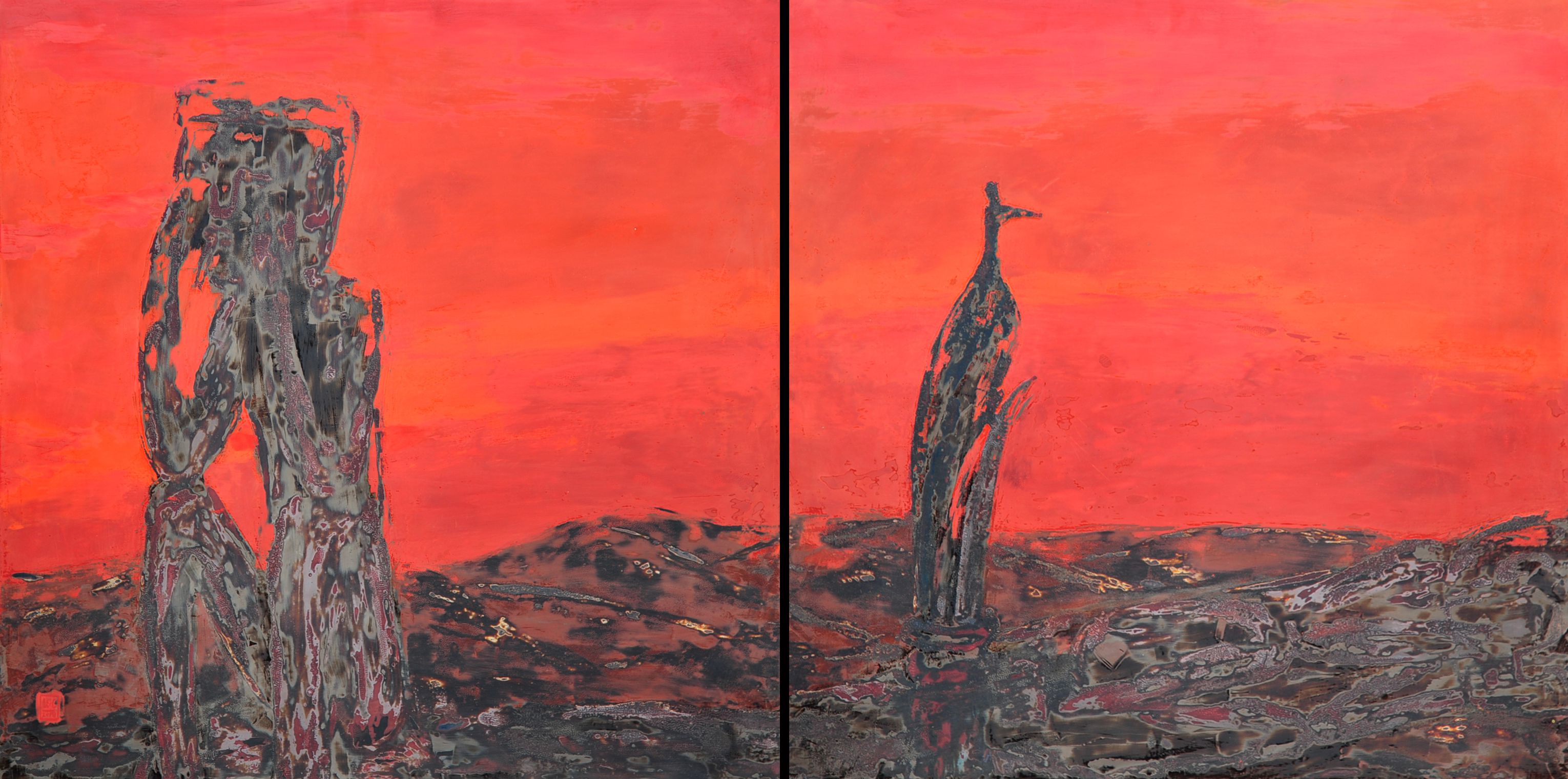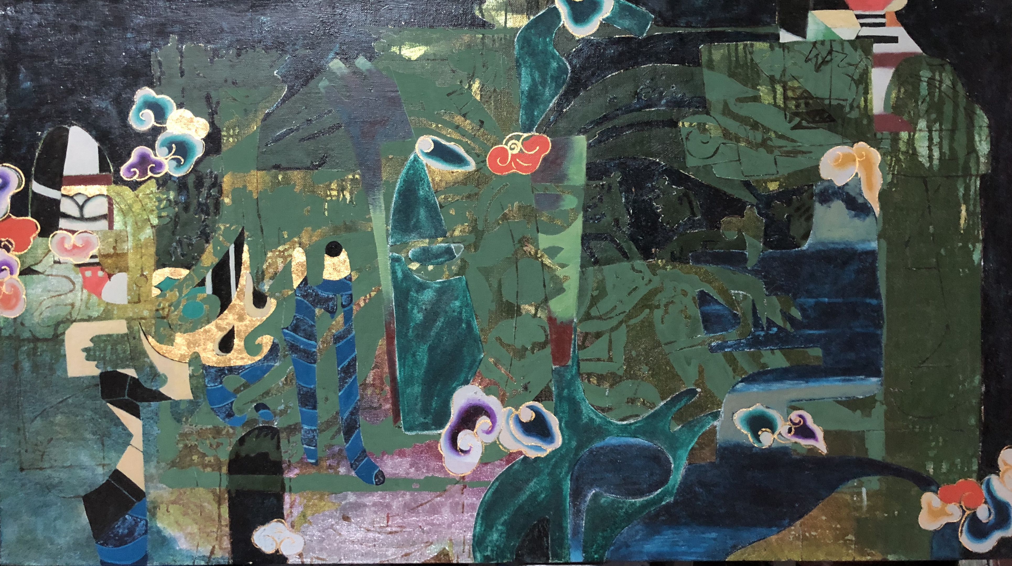 Tung hoành với chất liệu sơn dầu, họa sĩ Bùi Quốc Khánh sử dụng phong cách Pop và cách nhìn mới mẻ trong tác phẩm “H’reng trong bảo tàng”. Hình ảnh cô gái Tây Nguyên với ánh mắt u buồn ngước nhìn trời cao, xã hội thừa mứa vật chất, nhưng giá trị lịch sử, văn hóa thì chỉ còn trong bảo tàng. Chủ đề tranh có phần châm biếm xã hội đương đại, về một nền văn hoá đậm đà đang dần và có thể biến mất vĩnh viễn nếu chúng ta không có hành động thực sự. Cũng khai thác thế mạnh của chất liệu, bộ tranh “Đằng sau cửa cõi tạm I; II” của Nguyễn Minh Hiếu sử dụng các mô típ trang trí đặc trưng của Tây Nguyên, viết nên câu chuyện huyền bí về thế giới các vị thần thường được nhắc đến trong các sử thi, trường ca. Trong phong cách hội họa ấn tượng, “Giấc mơ bản số 2” của Phạm Hà Duy Khánh là một cảm nhận đầy mạnh mẽ về cuộc sống cao nguyên hoang sơ