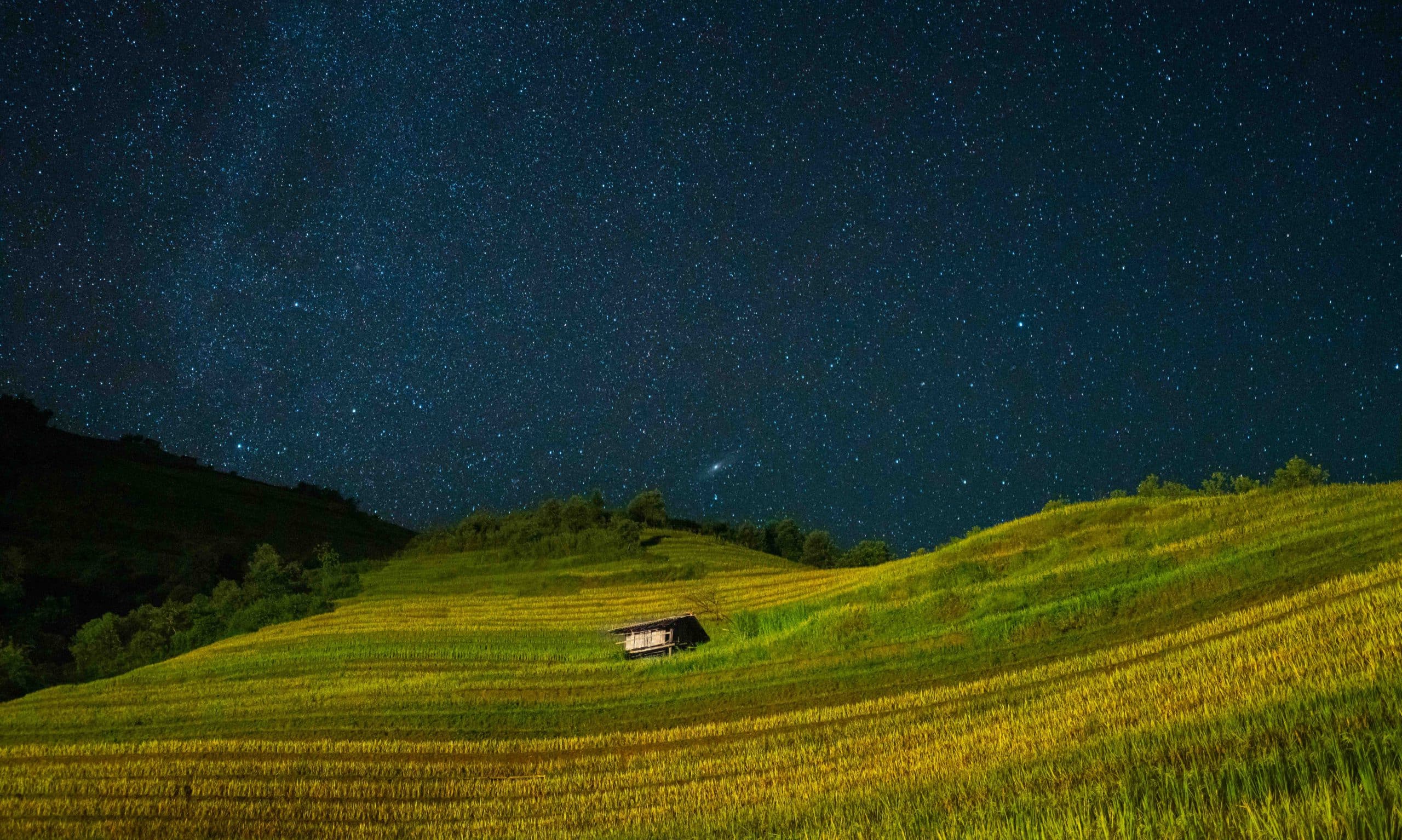 Là nơi được mệnh danh là “thiên đường ruộng bậc thang” của Việt Nam, lúa ở Mù Cang Chải thuộc tỉnh Yên Bái thường chín muộn vào tháng 10, đôi khi kéo dài cả sang đầu tháng 11 khi trời đã chớm lạnh. Không những đẹp kì vĩ như những bậc thang dẫn lối lên thiên đường, ruộng bậc thang ở đây còn đặc biệt bởi quy mô của nó, trải dài từ đèo Khau Phạ, dọc theo Quốc lộ 32 tới các khu vực đẹp như La Pán Tẩn, Dế Xu Phình, Mồ Dề và đi vào những xã nằm sâu bên trong như Lao Chải. Những biển vàng rực rỡ bao phủ khắp các sườn đồi, xếp tầng tầng lớp lớp như tấm lụa vàng mềm mại trải dài đến vô tận. Nếu tiếp tục hành trình trên Quốc lộ 32, dải lúa vàng ấy còn kéo dài tới những cánh đồng đẹp tựa cổ tích ở Than Uyên, tỉnh Lai Châu.