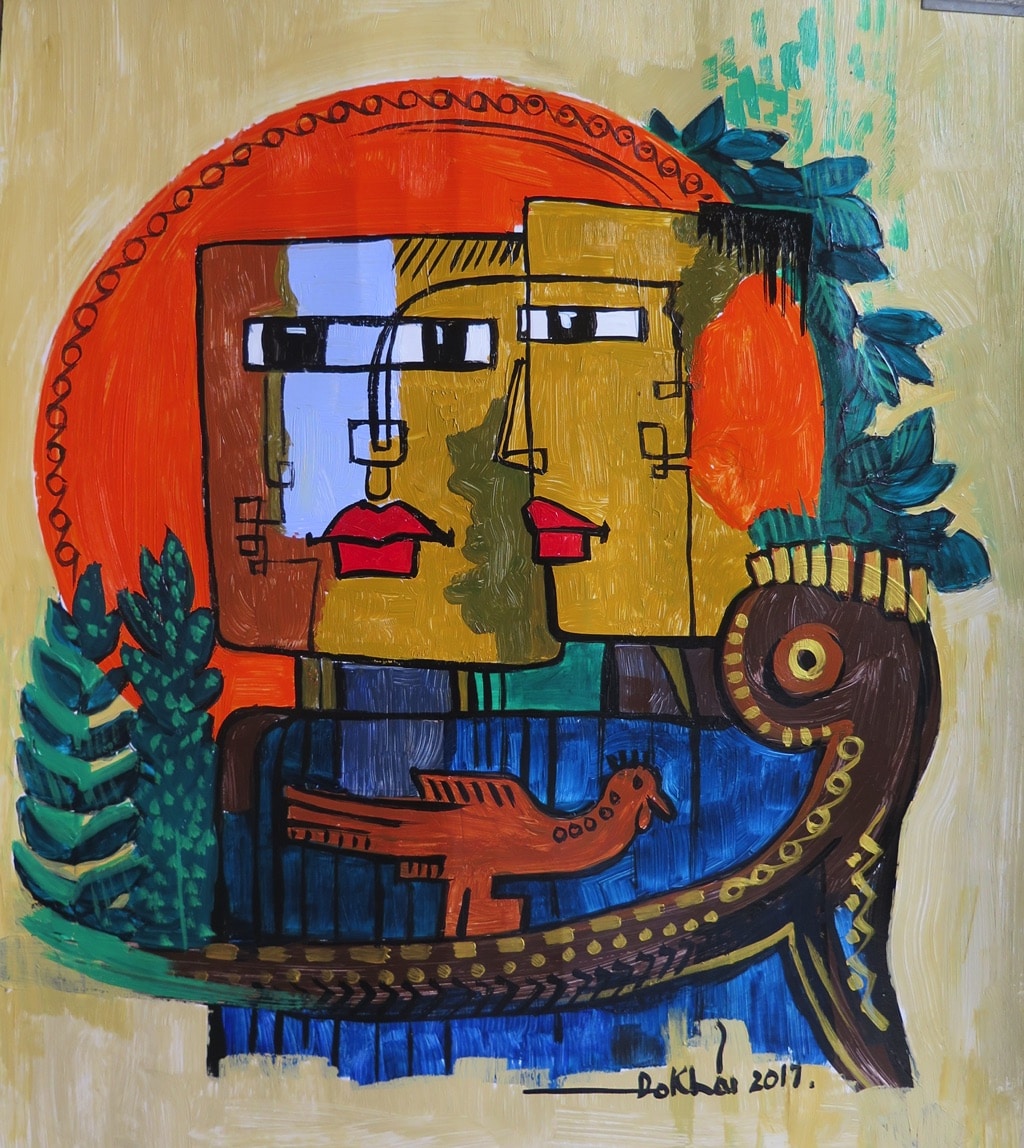 Từ ngày lấy vợ, Tân không chăm sóc em nhiều như trước nữa. Lang nghĩ anh “mê vợ quên ta” trong lòng chán nản buồn bực. Một hôm Lang và Tân cùng lên nương, đến tối mịt mới về. Lang về trước, vợ Tân nhầm lại ôm chầm lấy, lúc đó Tân bước vào nhà, và ghen với em. Lang vừa giận vừa thẹn. Chàng bỏ nhà ra đi lúc trời mới mờ sáng, trong lòng bực bội. Mấy ngày đường, Lang tới bờ một con sông lớn nước chảy xiết. Nhưng Lang quyết không chịu trở lại, cúi gục trên bờ, ôm mặt khóc. Chàng khóc mãi, khóc mãi, đến nỗi những con chim đi kiếm ăn khuya vẫn còn nghe tiếng nức nở. Sáng hôm sau thì Lang đã hóa đá.