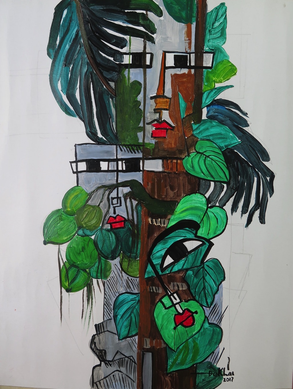 Vợ Tân chờ mãi không thấy chồng về, cũng bỏ nhà đi tìm. Nàng cũng tới con sông khóc cạn cả nước mắt, và chết hóa thành một cây dây quấn quanh lấy cây kia.