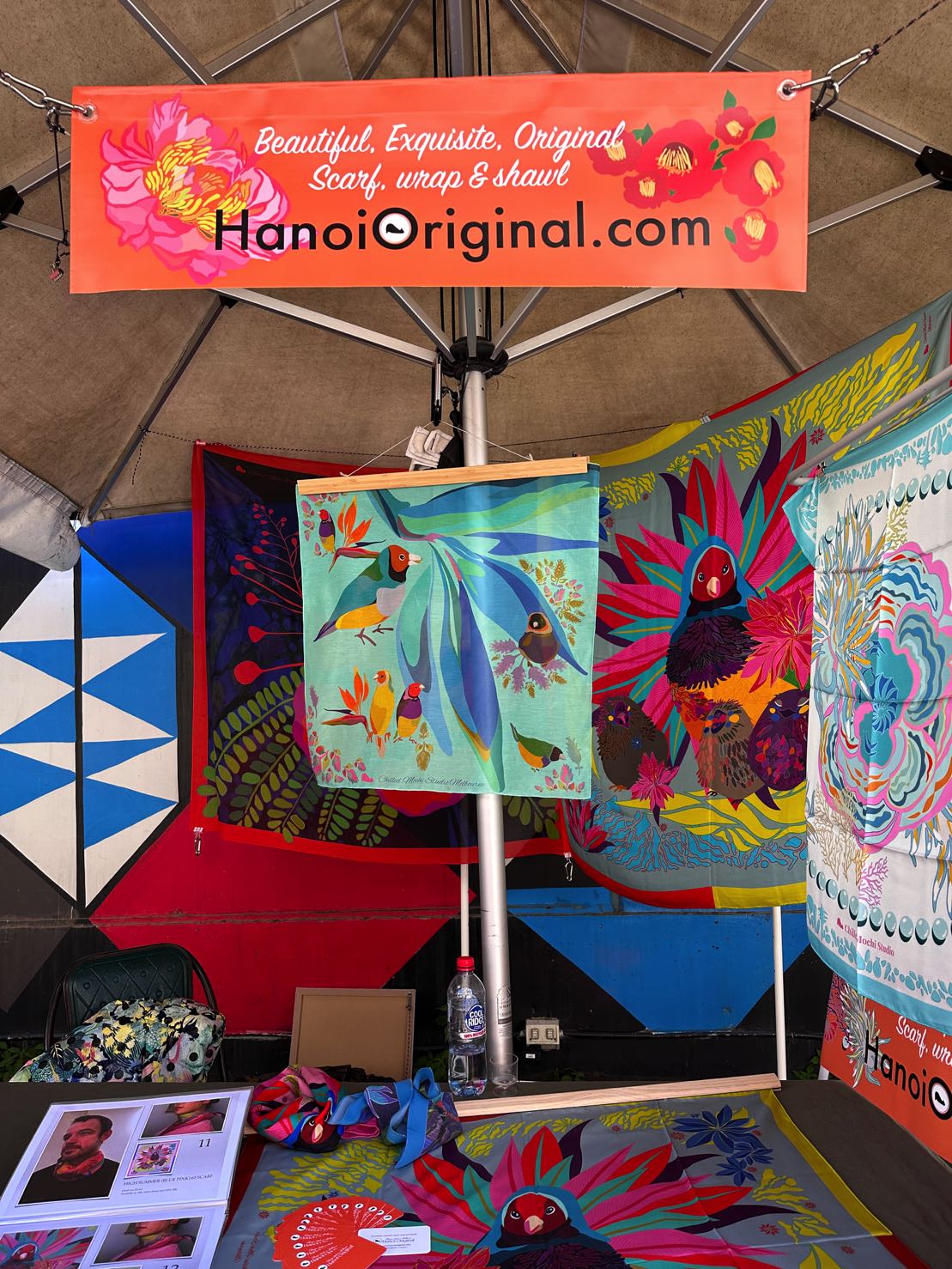 Quầy khăn nghệ thuật Hanoi Original của chị Eva Thiên Hương (chợ Rose Street, Melbourne)