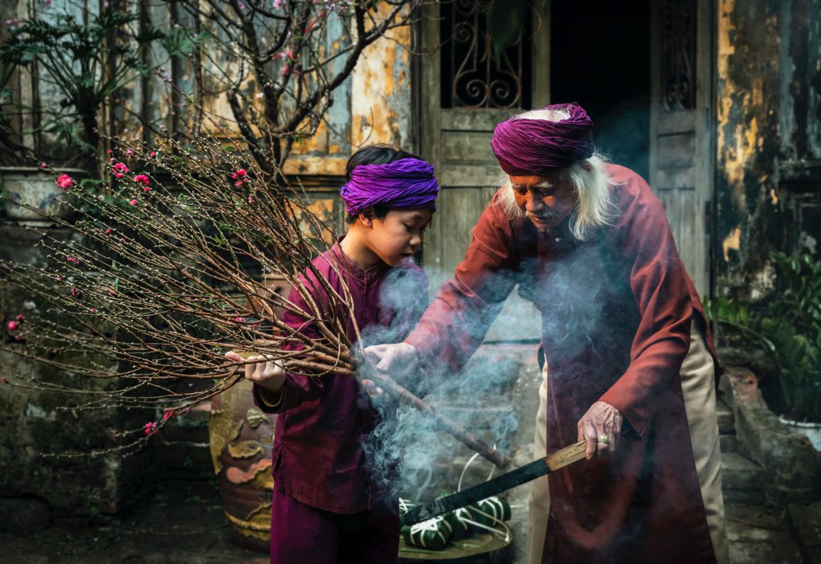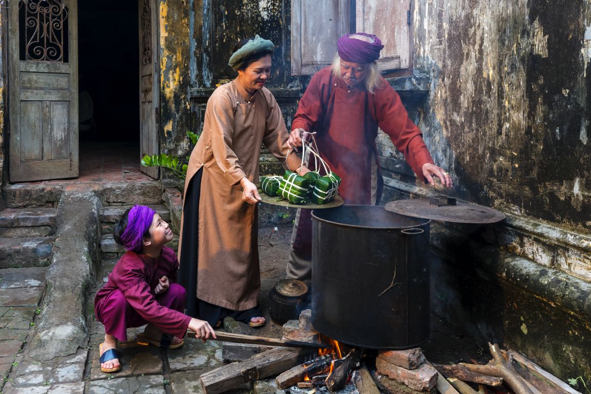 Đối với người Việt, Tết là khoảng thời gian thiêng liêng. Vì thế mà trước Tết luôn có sự chuyển cư vĩ đại của hàng triệu người, từ bốn phương trời về quê hương tụ họp. Người Việt xưa đã định hình Tết là phải có “Thịt mỡ, dưa hành, câu đối đỏ; cây nêu, tràng pháo, bánh chưng xanh”. Có lẽ bánh chưng là thứ bánh thuần Việt nhất với sự tích Lang Liêu làm bánh chưng dâng lên vua Hùng. Giàu nghèo gì thì người Việt cũng phải làm mâm cỗ cúng Giao thừa, trước nhất là mời tổ tiên về “thưởng thức” những món ăn truyền thống, sau đó là để con cháu hưởng lộc.