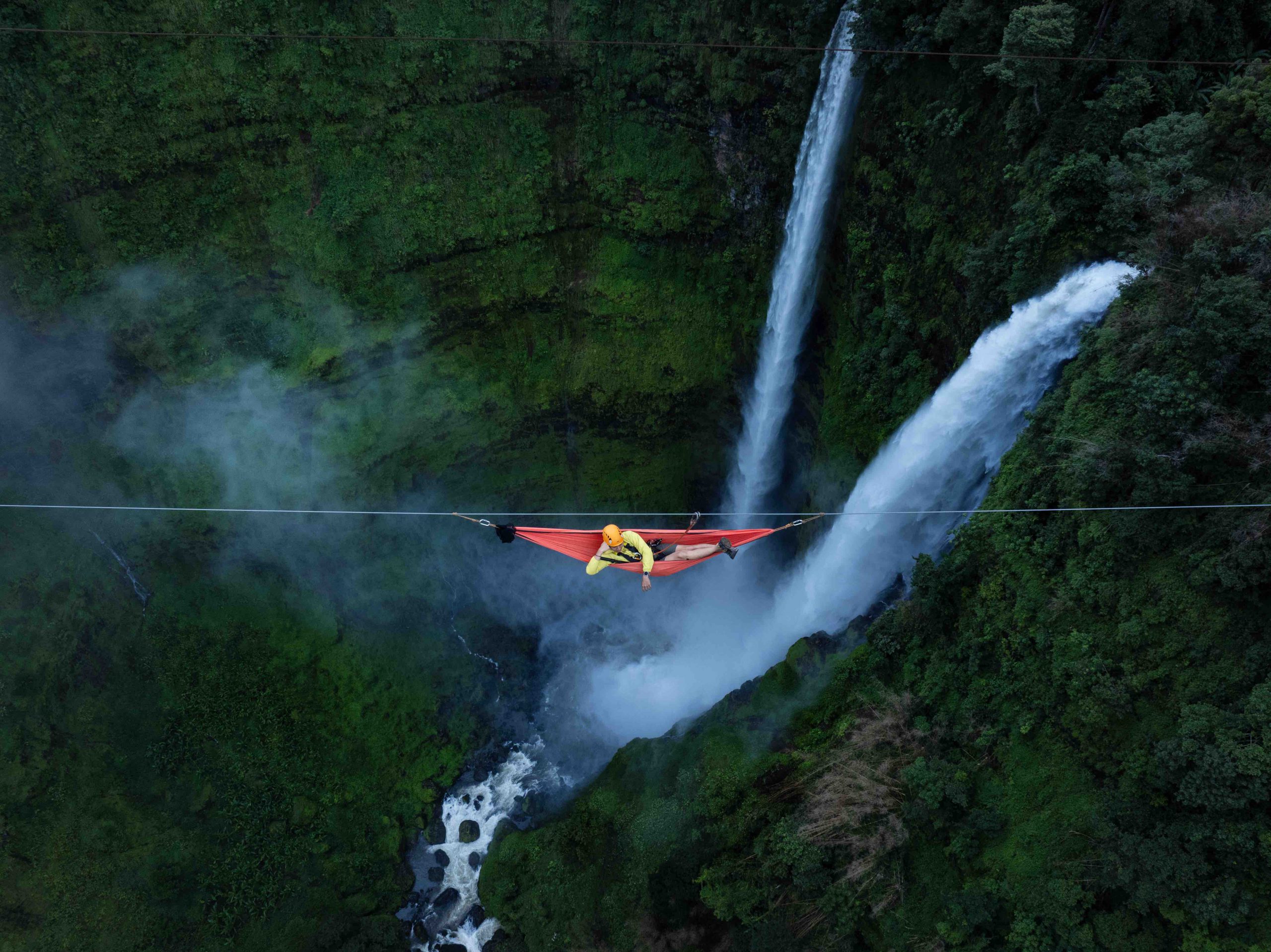 Cuối cùng là trải nghiệm nằm võng ở cấp độ 3 mới là cảm giác đứng ở lằn ranh sinh tử. Ngồi nhâm nhi cốc cà phê bên chiếc bàn vẫn có chút cảm giác chắc chắn vì có điểm tựa và có bạn đồng hành. Nhưng nằm trong võng thì chỉ có một mình mà thôi. Hơn nữa, cảm giác lắc lư không điểm tựa, khiến cho sự sợ hãi xâm chiếm toàn bộ tinh thần. Người tôi như đông cứng, còn mọi chuyển động đổi dáng lúc nằm, lúc ngồi như con robot bị điều khiển vô thức vậy. Mỗi giây trôi qua đằng đẵng như vô tận. Mồ hôi lạnh túa ra, tim đập như trống dồn. Chỉ cần một cơn gió nhẹ thổi qua là chiếc võng lắc lư như một cơn địa chấn dữ dội. Nhưng cũng như những lần thưởng thức cà phê giữa thác, khi bình tĩnh tôi lại thấy việc “tận hưởng” trải nghiệm đáng sợ mà đáng nhớ này cũng nên có một lần trong đời.
