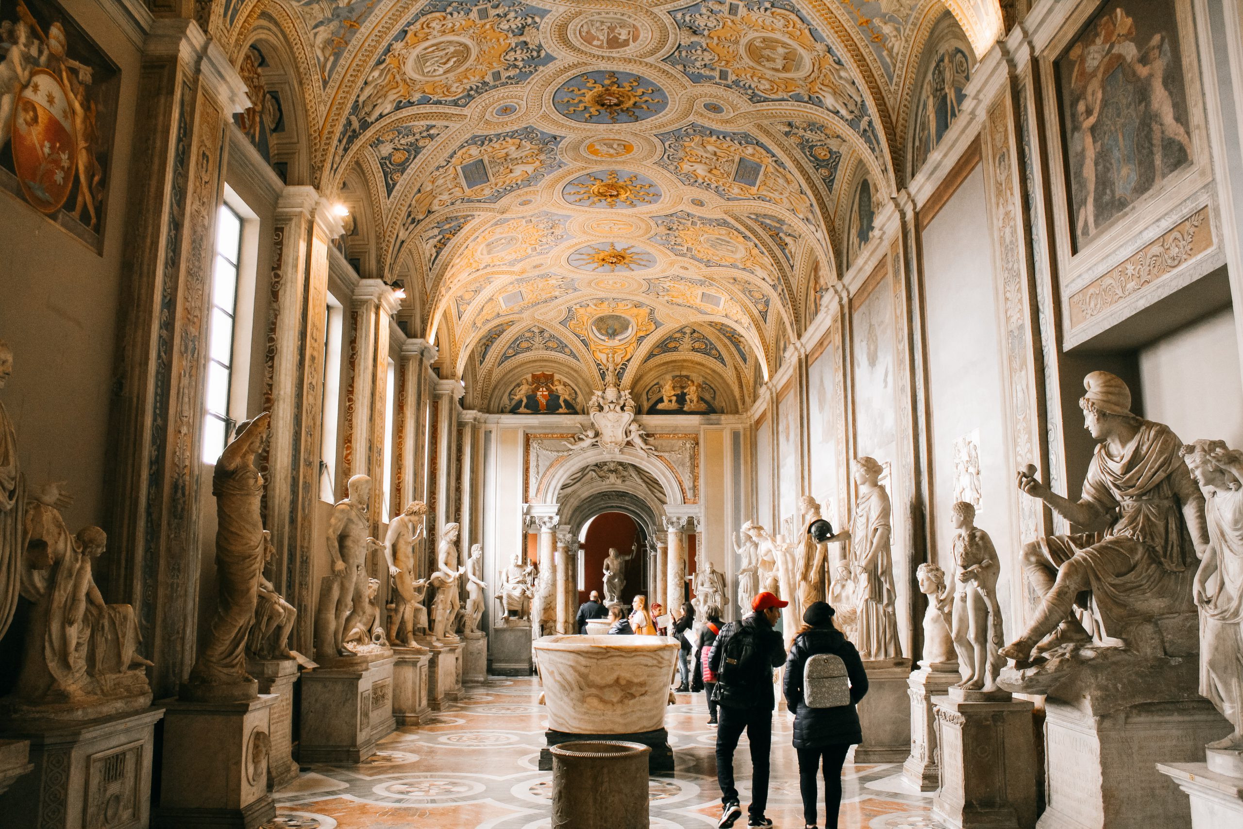 Tôi đến bảo tàng Mvsei Vaticani vào một chiều mưa lất phất. Trước mắt tôi là dòng người đông đúc, đứng xếp thành hàng dài hơn 200m ở bức tường đá bao quanh mặt sau của thành phố Vatican. Để gìn giữ tính bảo tồn cho không gian, chỉ một lượng người nhất định được phép vào tham quan trong cùng một thời điểm. Tôi đã đứng gần 20 phút dưới tiết trời giá lạnh với niềm mong mỏi được chiêm ngưỡng vẻ tráng lệ của Mvsei Vaticani như thế giới hằng tôn vinh, dù thực lòng, đã có lúc tôi không còn giữ được tinh thần phấn khích. Nhưng quả thực, mọi sự kiên nhẫn đều đáng giá, nó tựa như cách ta hành hương vậy. Chỉ cần qua khỏi quầy kiểm tra an ninh, rẽ vào phòng trưng bày đầu tiên, những xúc cảm thỏa mãn dần hiện rõ trong đôi mắt tôi.