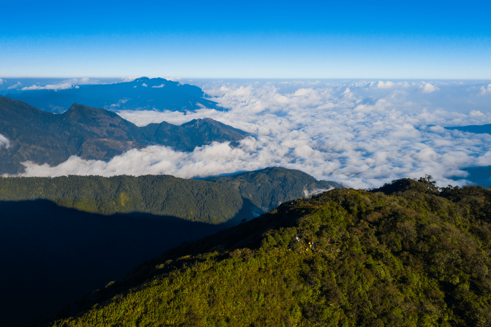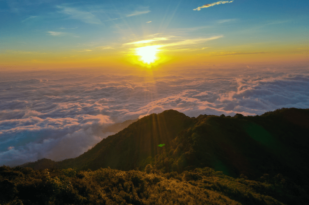 Đây là một ngọn núi tương đối dễ leo, ngay trong ngày, chúng tôi vượt qua 7km thẳng lên đỉnh núi, mất khoảng 6 giờ để ngắm hoàng hôn rồi về lán nghỉ. Sáng sớm hôm sau, chúng tôi lại leo lên đỉnh một lần nữa đểđón bình minh trong biển mây bồng bềnh.