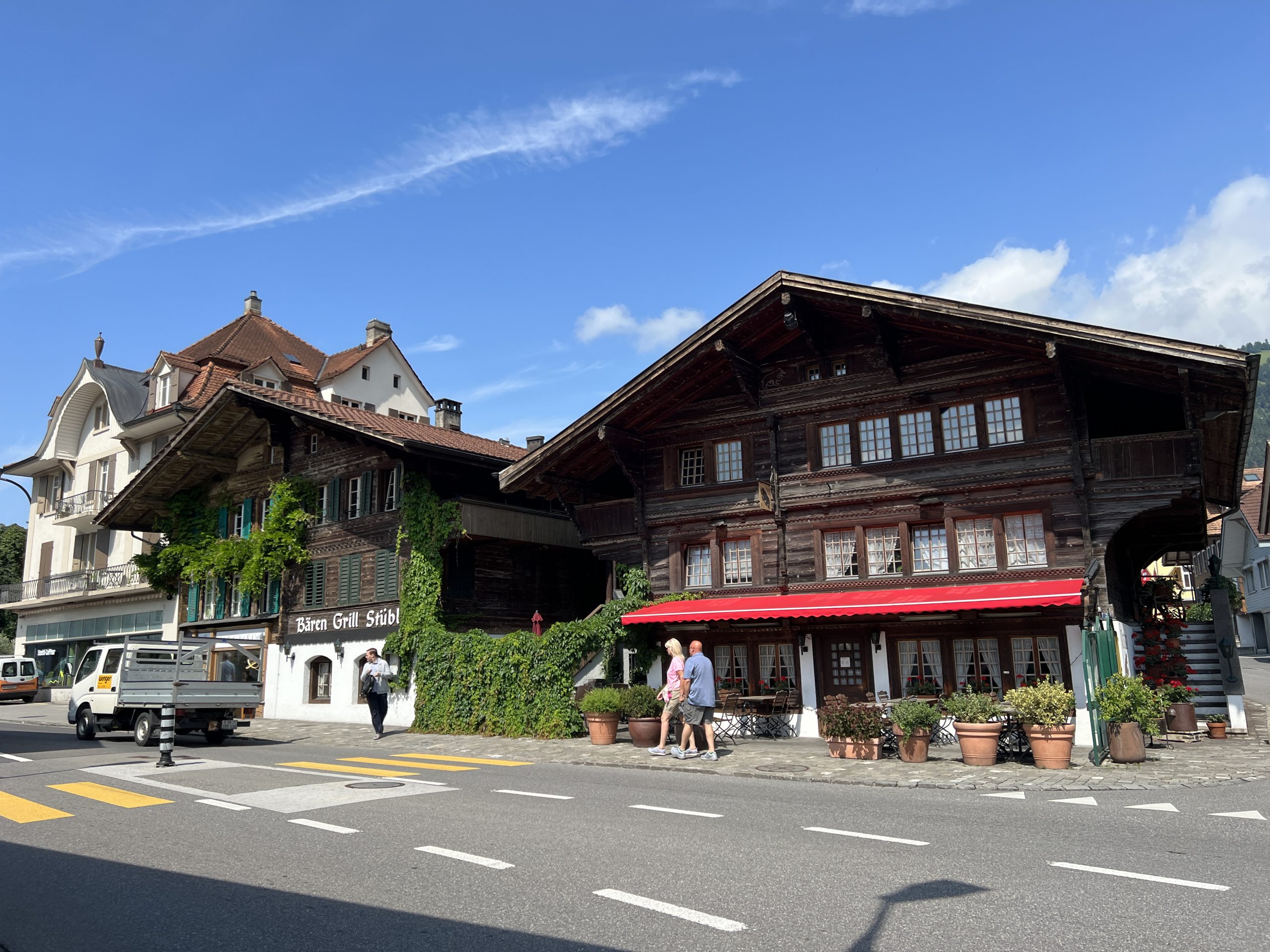 Từ đây, chỉ cần cuốc bộ 10 phút, chúng tôi đã về đến khách sạn. Hotel Beau-site, khách sạn nhỏ nhắn xinh đẹp như cái tên rất Pháp của nó có lối trang trí cửa sổ như diềm váy của các thiếu nữ trong điệu nhảy dân vũ. Không uổng phí thời gian, chúng tôi dạo quanh làng. Vốn nằm trên vùng đất mang địa hình núi, những căn nhà gỗ truyền thống Thụy Sỹ với mái dốc nhẹ và hàng hiên rộng, uốn lượn theo con đường nhỏ hẹp, từng là biểu tượng cho kiến trúc đồng quê giản dị, kết nối với thiên nhiên những năm nửa sau thế kỷ 19. Trên đường đi dạo, có ngôi nhà lưu dấu xây dựng từ 1898, như minh chứng cho một giai đoạn lịch sử của Thụy Sỹ.