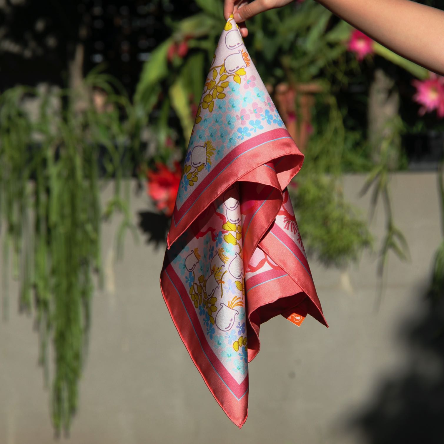 Vốn là dân học mỹ thuật, nhưng làm việc trong lĩnh vực IT, nhà thiết kế khăn lụa nghệ thuật Thiên Hương lại tìm tòi, kết hợp vẽ tay, vẽ trên máy với in kỹ thuật số lên lụa, để tạo ra những chiếc khăn lụa in hai mặt với thiết kế đẹp, độc đáo đi kèm chất lượng in đột phá. Trong lĩnh vực mỹ thuật ứng dụng, bên cạnh yếu tố thẩm mỹ, người thiết kế phải nắm được đặc tính của bề mặt và chất liệu, cũng như hiểu mỗi chất liệu (vải, lụa) sẽ được dùng làm sản phẩm gì, để từ đó điều chỉnh thiết kế cho sản phẩm in ra “lên màu”’ được như ý. Cùng một bản vẽ, in lên lụa dệt satin 9 momme (đơn vị đo trọng lượng của lụa) sẽ cho ra sắc độ và đường nét khác hẳn so với in lên 100% lụa dệt chéo loại 18 momme. Bắt đầu chỉ với những sản phẩm thử nghiệm in một mặt, hiện tại nhà thiết kế chuyên khăn lụa nghệ thuật này tiếp tục giới thiệu những chiếc khăn lụa “2 trong 1”, in 2 mặt với mỗi mặt một bản màu khác nhau, đẩy nghệ thuật thiết kế và in khăn lụa lên một chất lượng cao mới.