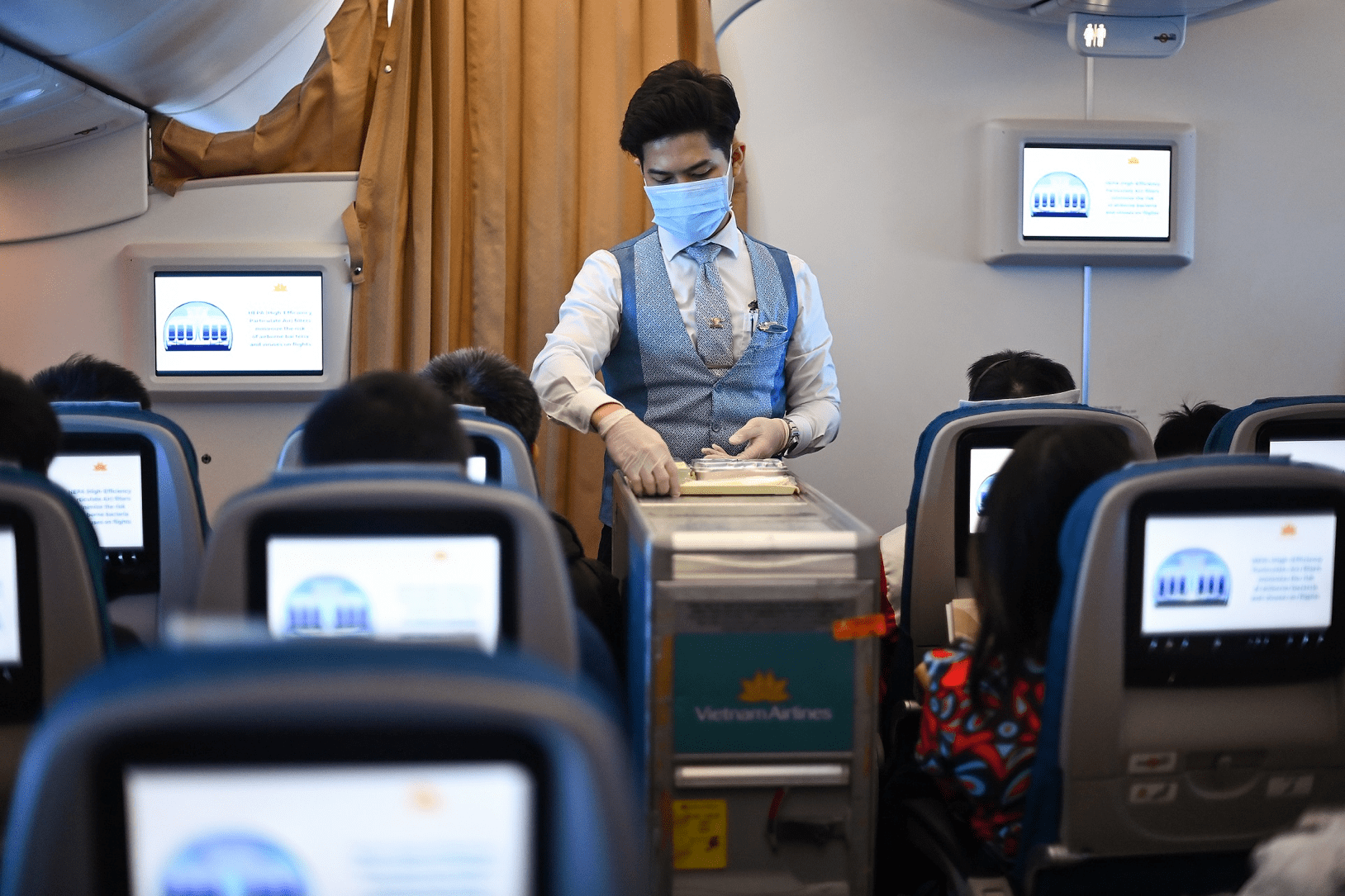 Vietnam Airlines cũng là hãng đầu tư mạnh mẽ nhất vào công tác khử khuẩn với tần suất khử khuẩn máy bay, trang thiết bị và dụng cụ phục vụ hành khách nhiều nhất. Hãng đang phun khử khuẩn tất cả các hành trình có điểm xuất phát từ Nội Bài, Cát Bi và phun lại toàn bộ máy bay vào cuối ngày. Mọi chuyến bay không xuất phát từ Nội Bài, Cát Bi được sát khuẩn bằng khăn tẩm dung dịch Netbiokem DSAM ngay sau khi hạ cánh.