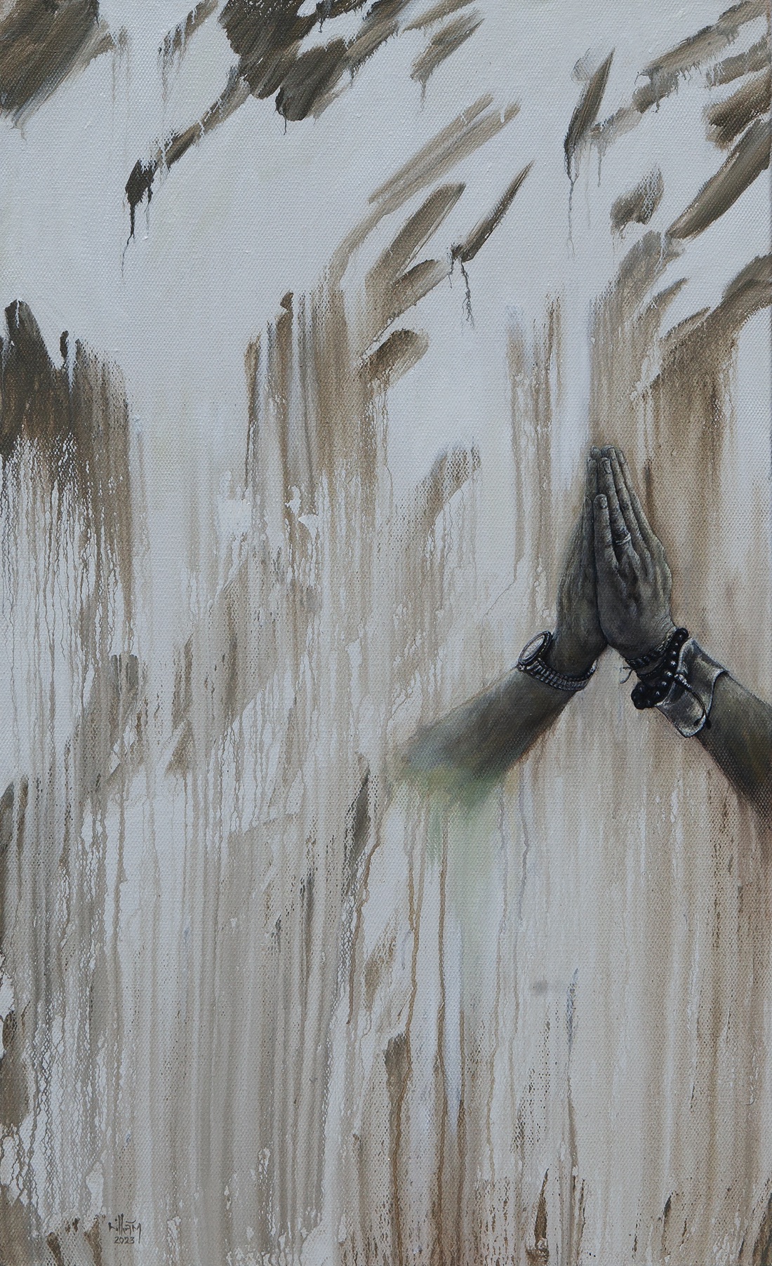 “Trong cái không có gì không” chạm sâu vào bản chất tĩnh-lắng vốn là khởi thủy của vạn sự. Mỗi nét cọ của Trần Nhật Thăng không còn nắm giữ tính động hay tính biến đổi nữa mà ẩn sau đó là trạng thái thanh tịnh bao trùm mọi biến chuyển. Trong đó, anh lấy hình ảnh Đức Phật hay nhà tu như ẩn ý cho bản chất an nhiên trước mọi sinh-diệt nơi thế gian.